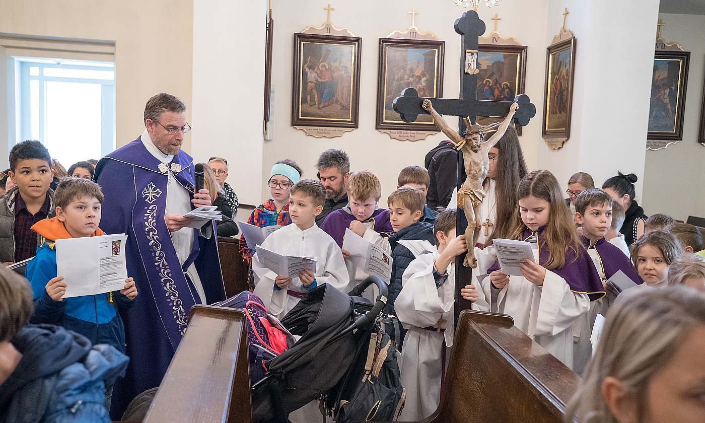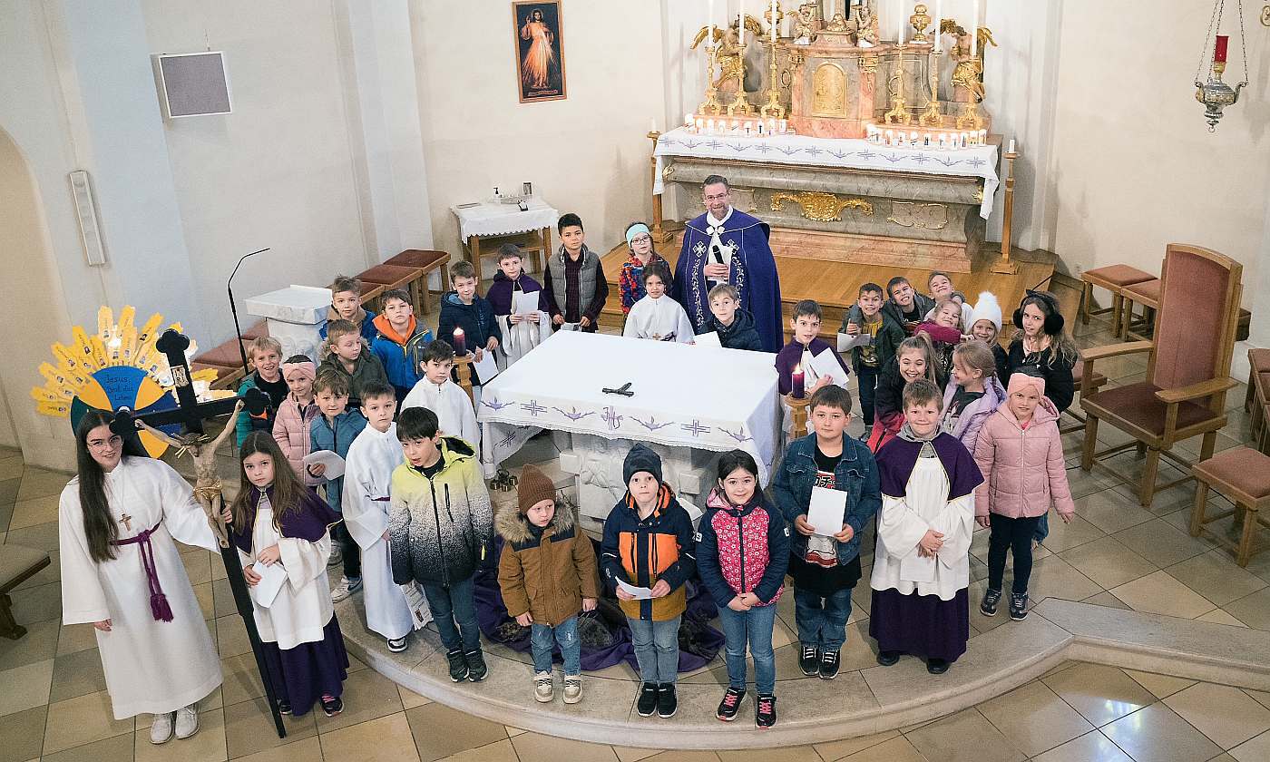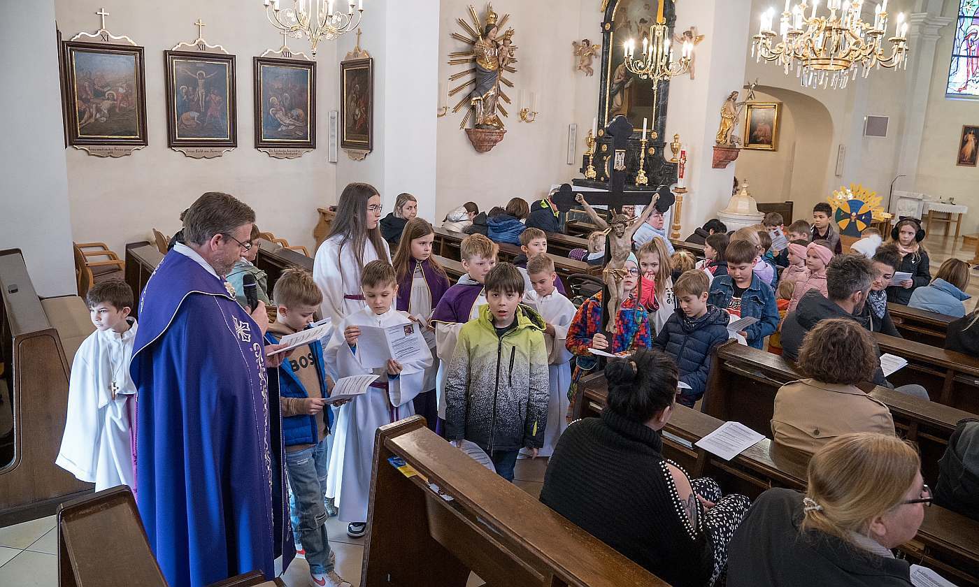Am Freitag 15.3.2024 lud Pfarrmod. Stefan Jahns die Kinder zum Kinderkreuzweg in die Pfarrkirche.