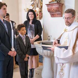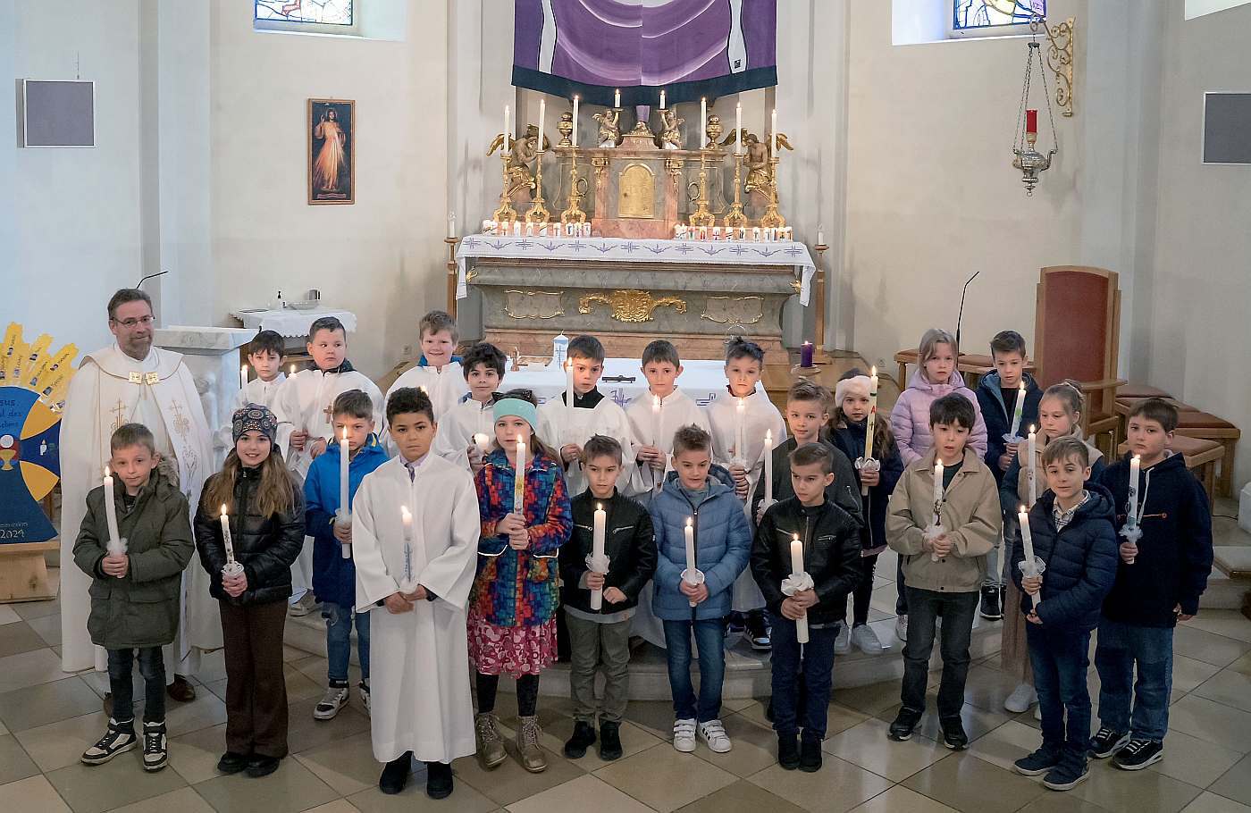Am Sonntag, 17.3.2024 empfing Tyrese Igene Tobias Hamm das Sakrament der Taufe. Er bereitet sich mit seinen Schulkameraden auf die hl. Erstkommunion vor. Die Kinder kamen in die Kirche, damit sie bei der Taufe ihre Taufgelöbnis erneuern und dann gemeinsam mit Tyres Tobias ihren Glauben bekennen. Die Fürbitten wurden von den Kindern vorgetragen, VS-Lehrer Lukas Kornfeind hat die Taufe musikalisch umrahmt.