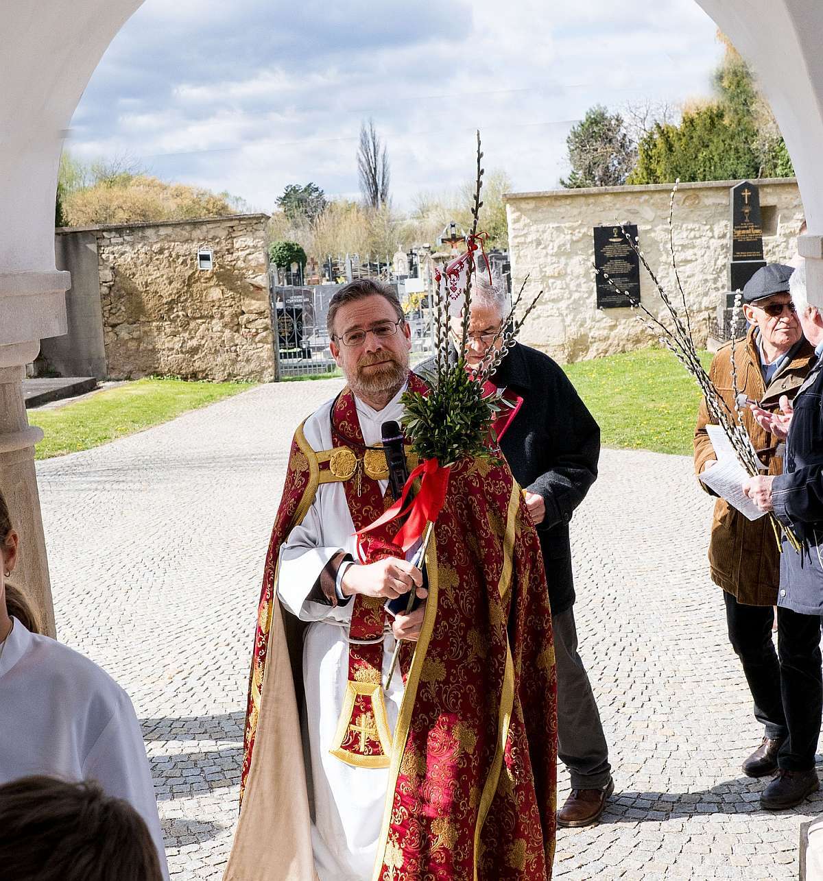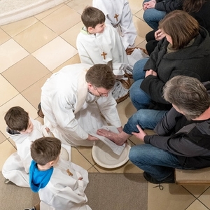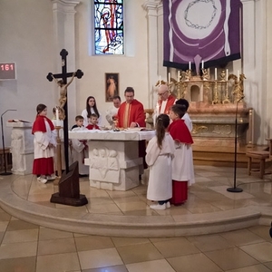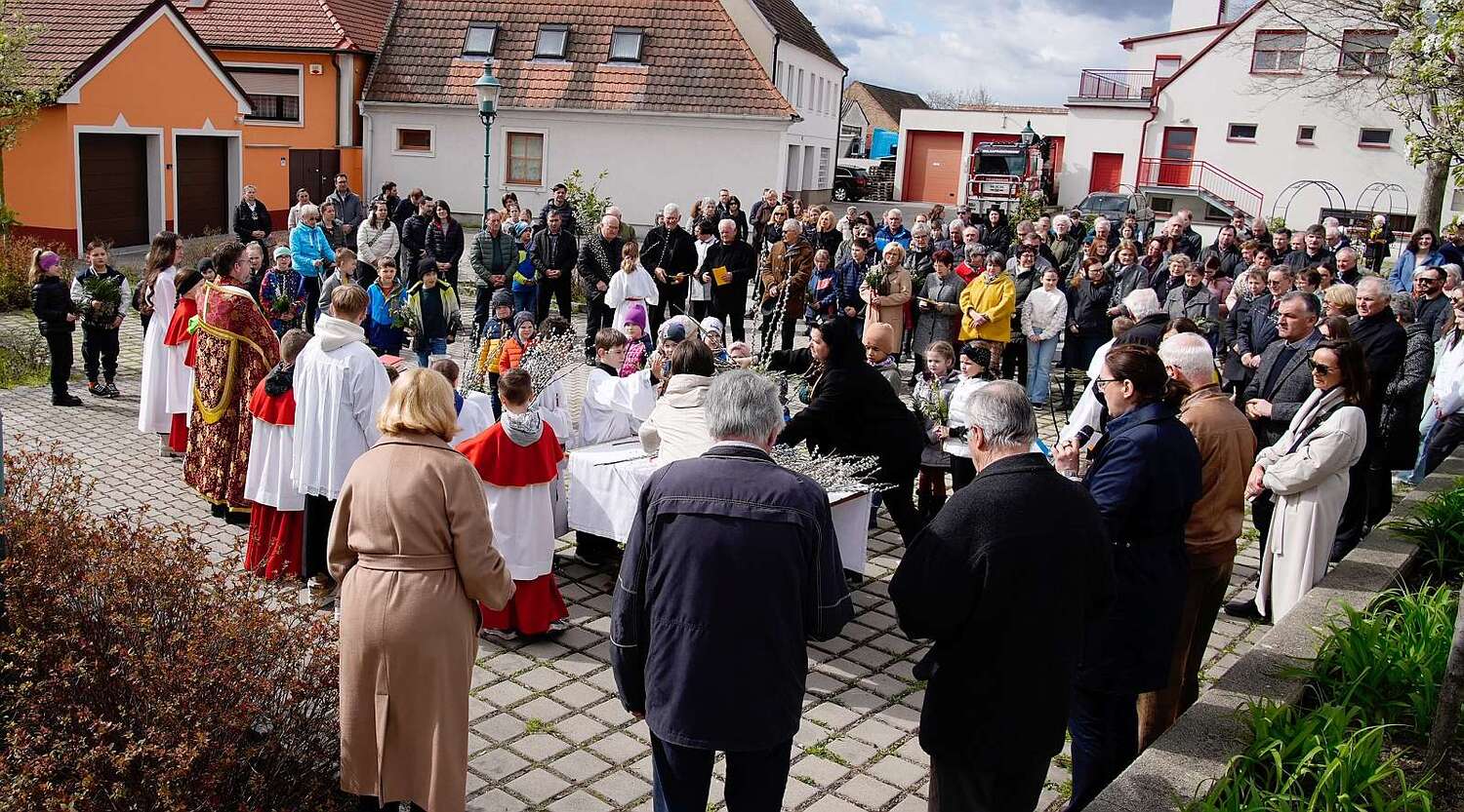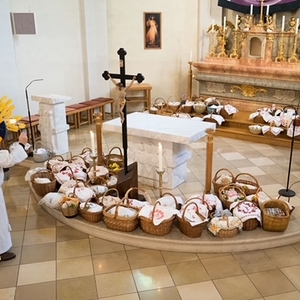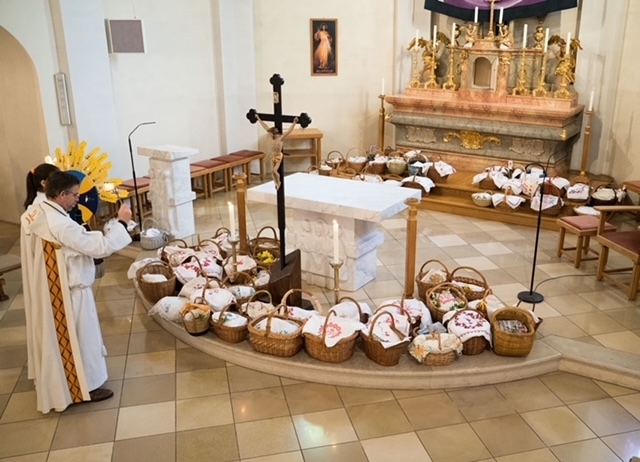 Bilder vom Palmsonntag mit der Palmweihe, Gründonnerstag die hl. Messe vom Letzten Abendmahl und Fußwaschung, am Karfreitag die Feier vom Leiden und Sterben Christi, am Karsamstag gemeinsame Andacht beim Heiligen Grab und Speisensegnung, die Osternachtsfeier am Karsamstag mit Feuerweihe und Entzünden der Osterkerze sowie am Ostersonntag das Osterhochamt.
