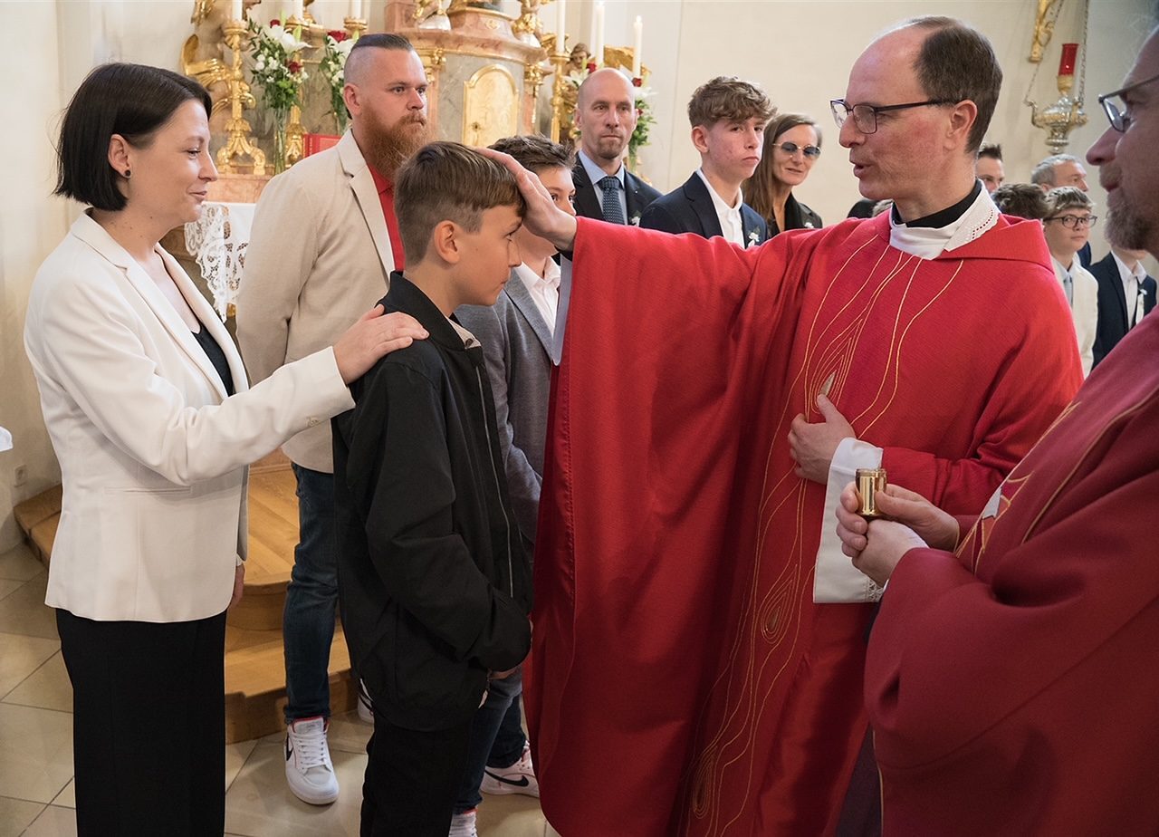 Die Spendung der Firmung erfolgte am Pfingstsonntag, 19.5.2024 im Rahmen der Hl. Messe von P. Stefan Vukits an 29 Firmlinge.
