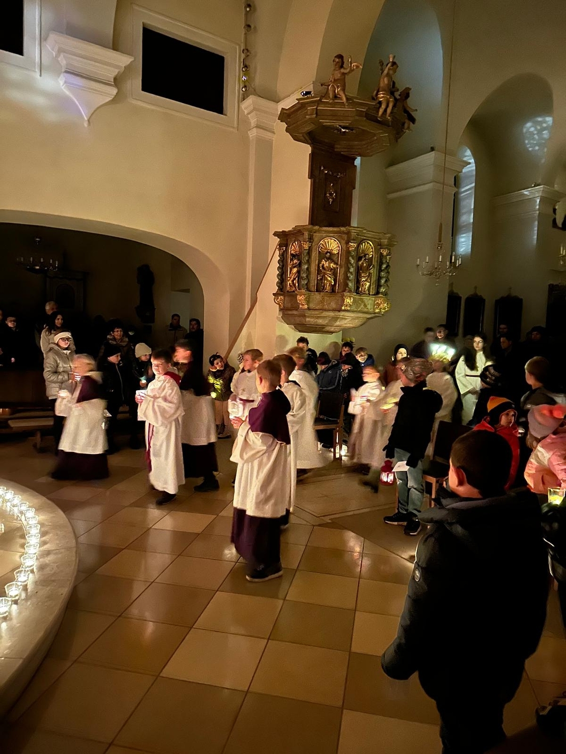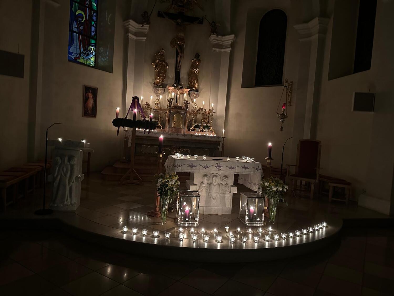 Im Gedenken an die hl. Lucia feierte Pfarrmoderator Mag. Stefan Jahns die Roratemesse am Montag, 15.12.2025. Zur Mitfeier waren besonders Schüler und Jugendliche eingeladen. Viele mitgebrachte Kerzen erleuchteten die Kirche und so wurde die Messe ohne elektrische Beleuchtung gefeiert.