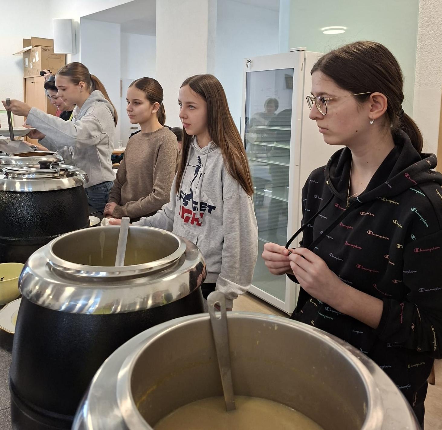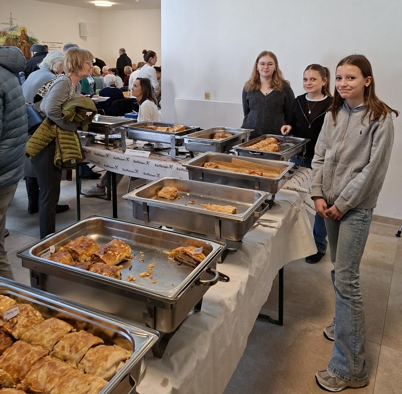 Anschließend lud der Pfarrgemeinderat zum Fastensuppenessen ein. Die Firmlinge haben dabei die Pfarre tatkräftigt unterstützt beim Servieren der Speisen und Getränke. Insgesamt wurden 11 verschiedene Suppen und 14 verschiedene Strudeln angeboten. Die Speisen wurden von Mitgliedern der Pfarre zur Verfügung gestellt.