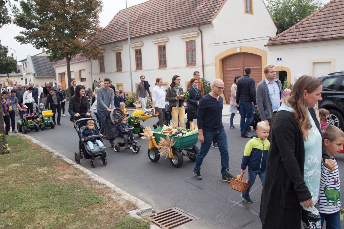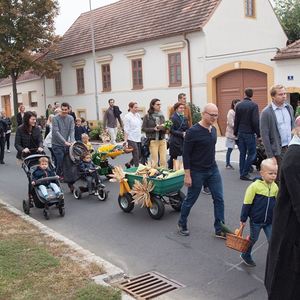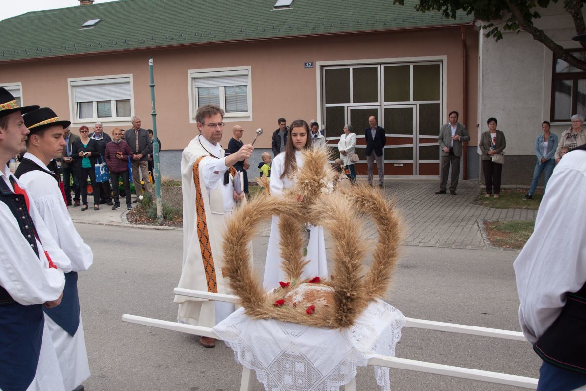 Pri lipom sunčanom vrimenu došli su vjerniki nedilju, 26. septembra kod marijanske kapele nasred sela skupa, da počnu slavlje žetvene zahvale. Došlo je i mnogo dice sa svojimi lipo nakinčenimi malimi traktorići i košarkami a u nji sadje i povrće. Nazočne pozdravio je farski moderator mmag. Štefan L. Jahns, blagoslovio naredjenu korunu i dare ter je krenula procesija u farsku crikvu. Žitnu korunu nosili su kotrigi folklorne grupe “Poljanci”. Pri svetoj maši su se vjerniki zahvalili Bogu za sve dare ter su i dica 2. razreda osnovne škole čitala molitve vjernikov. Po svetoj maši nije ljetos zbog korona-pandemije bilo agape.