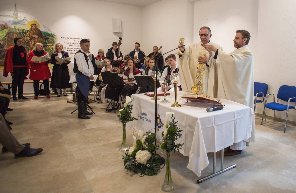 Am Ostermontag, 18.4.2022 erfolgte die Segnung des komplett neu renovierten Pfarrheimes. Die Feier begann um 10.30 Uhr mit der Hl. Messe, die von der Tamburizza Poljanci und der Frauen-Klapa EVO NAS aus Trausdorf mitgestaltet wurde.