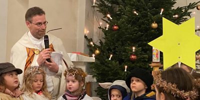 Pfarrmoderator MMag. Stefans Jahns gestaltete am Nachmittag des 24.12.2022 eine Krippenandacht für und mit den Kindern der Pfarre.