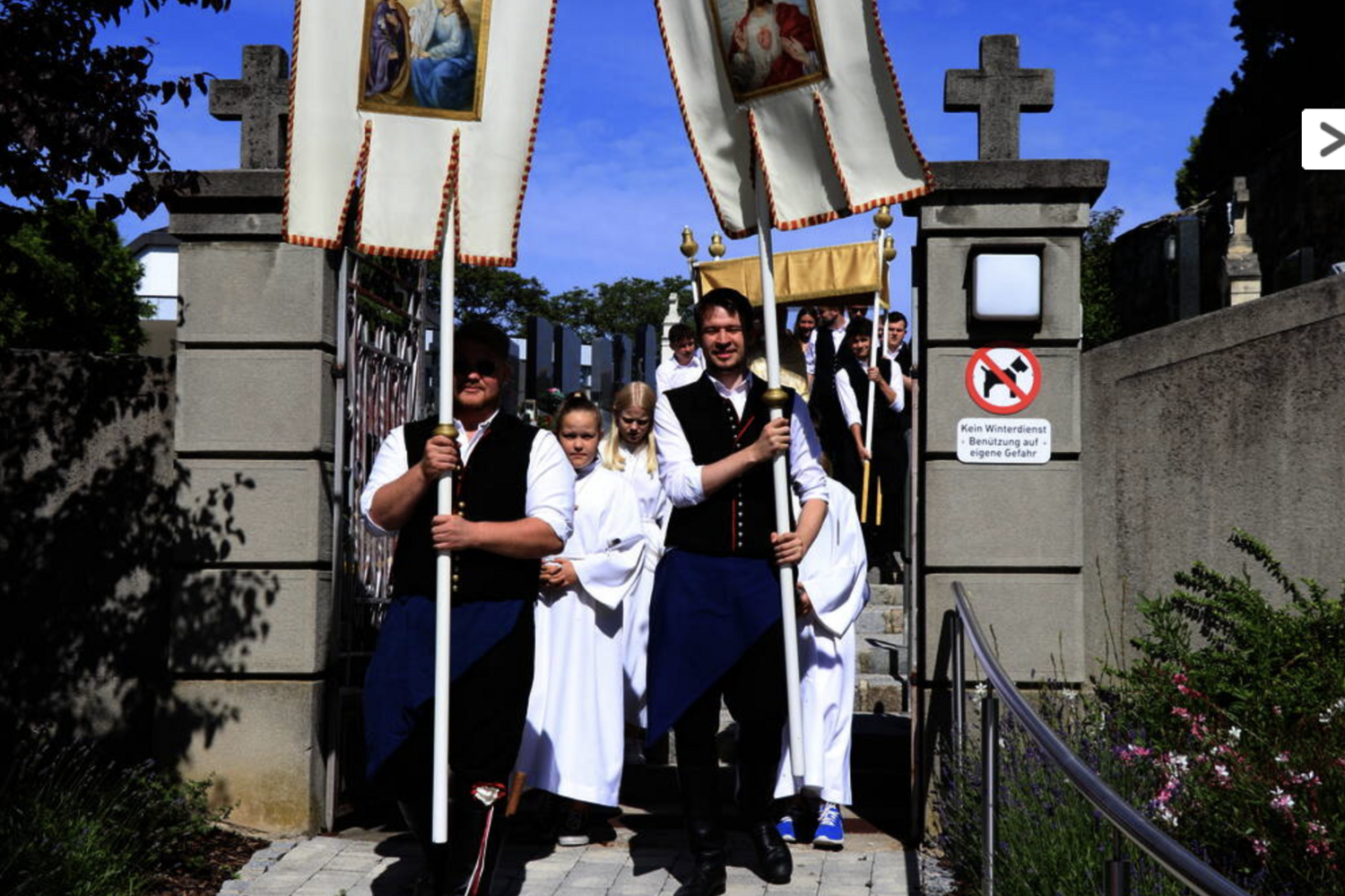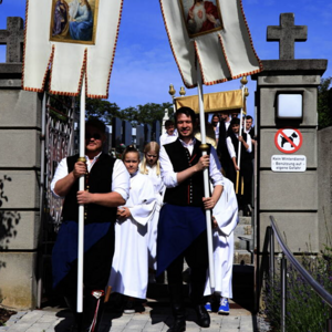 Vielen Dank den Ministrant*innen, den Mesnerinnen, dem Kirchenchor mit den Kantor*innen, den Erstkommunionkindern mit ihren Tischmüttern, den Robischmädchen und -burschen, dem Musikverein, dem Gesangverein, der Feuerwehr, dem Roten Kreuz und allen, die mitgegangen sind.