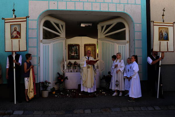 In einer feierlichen Prozession trug Pfarrer Mag. Josef M. Giefing die Monstranz durch unser Dorf, hinaus zu den Menschen. Es war schön, dass viele Menschen dabei waren und ein Zeichen des Glaubens setzten.