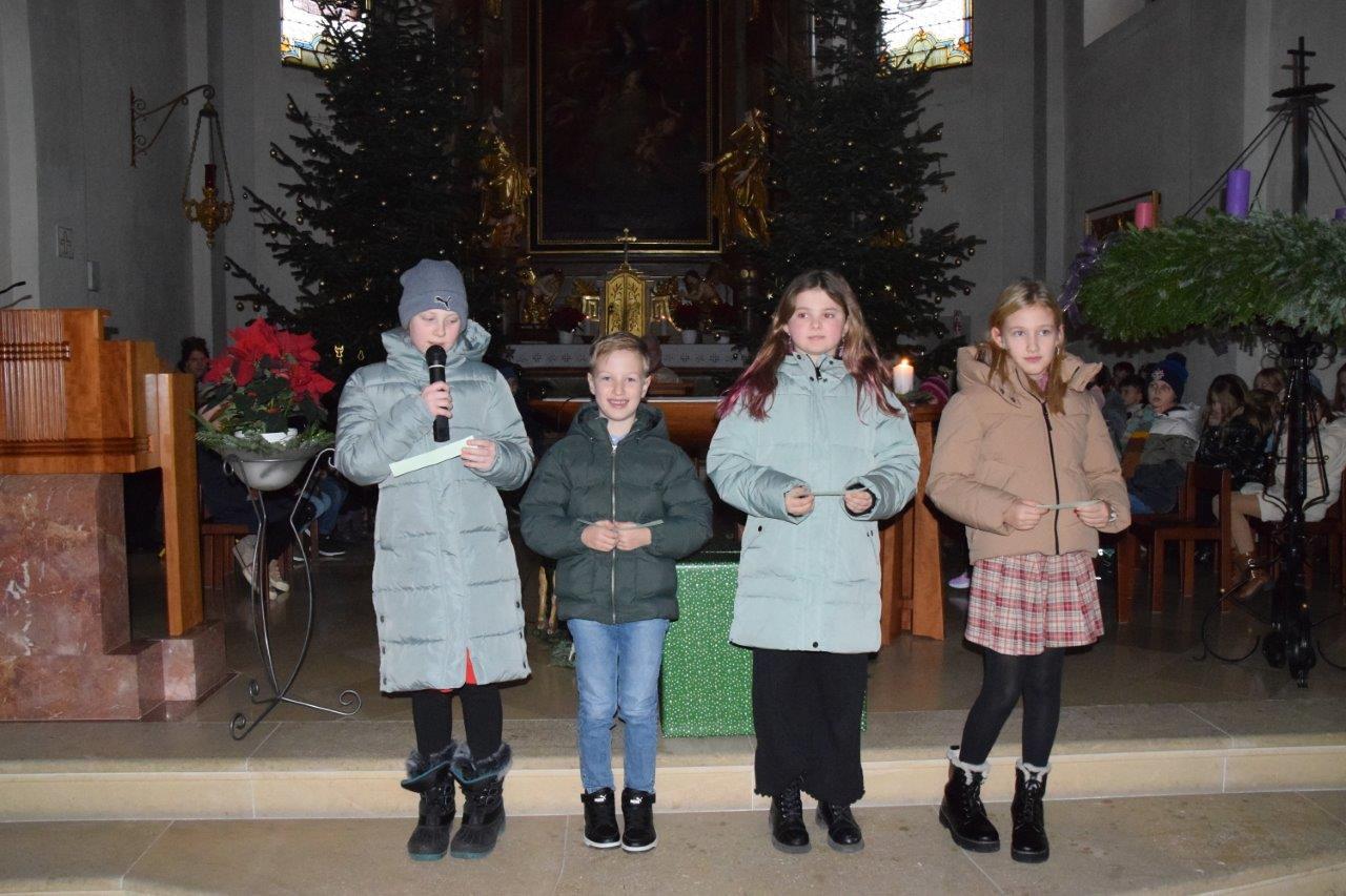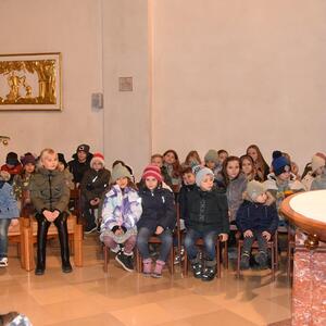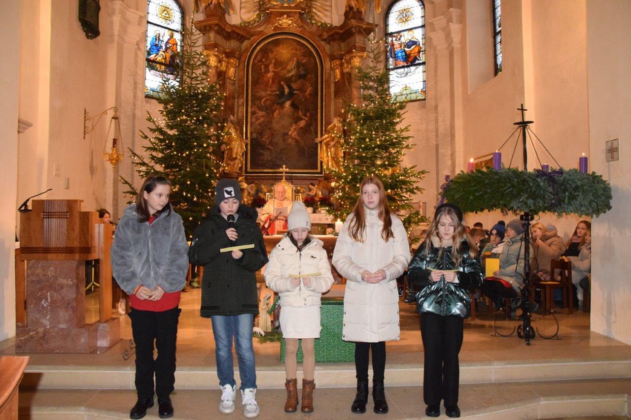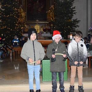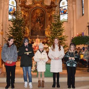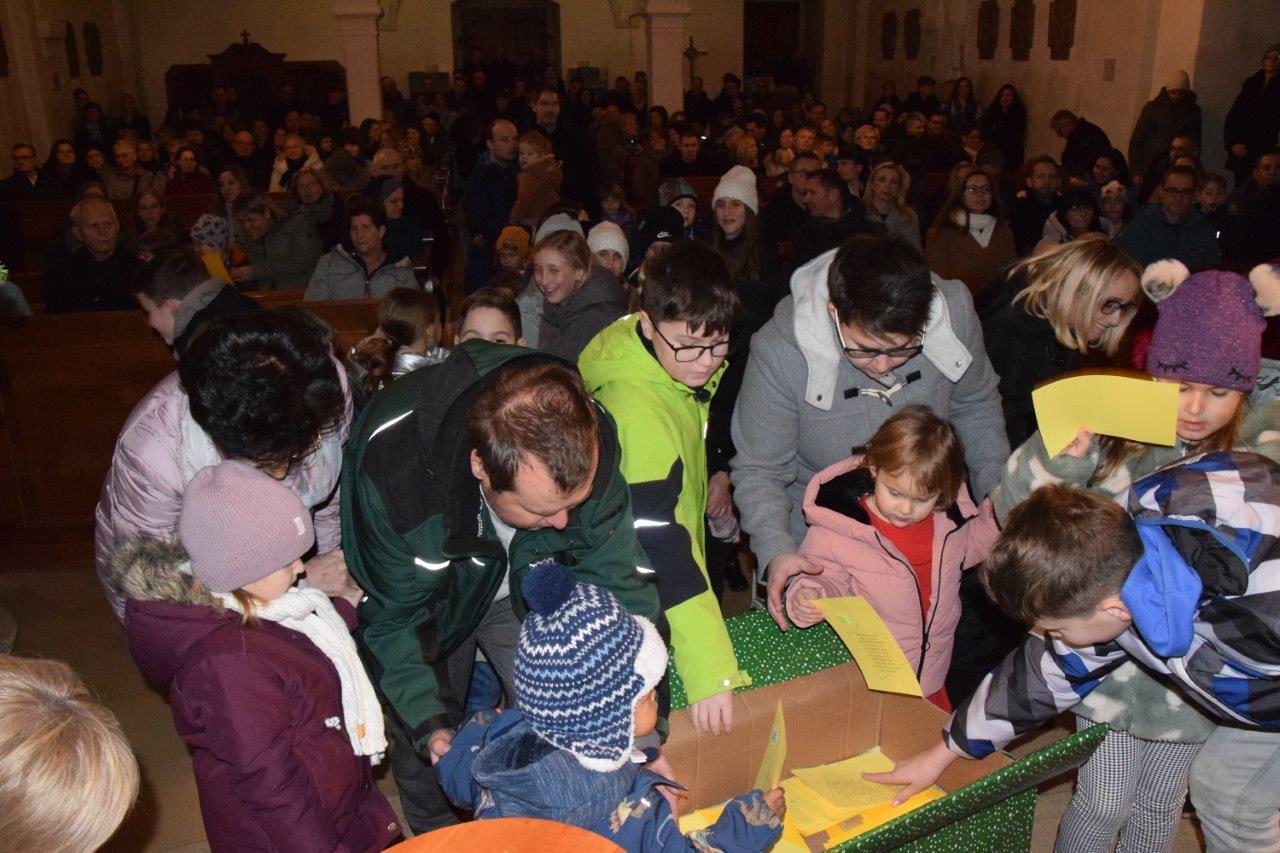 Im Kinderwortgottesdienst am Heiligen Abend feierten wieder sehr viele Kinder mit ihren Familien die Geburt von Jesus. Es wurden die Kerzen am Adventkranz noch einmal entzüdet. Im Evangelium erzählte uns Hr. Pfarrer Giefing die Weihnachtsgeschichte und ein großes Paket vor der Krippe machte alle neugierig. Was da wohl drinnen war? Jesus schenkt sich uns durch seine Geburt. Als Erinnerung daran, durfte sich jedes Kind einen Leuchtstern aus dem großen Paket mit nach Hause nehmen. Zum Schluss sangen alle gemeinsam "Stille Nacht" begleitet von Cosima Maier auf der Orgel.