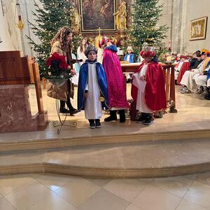 Am Dreikönigstag gestalteten  die Sternsingerinnen und Sternsinger den Gottesdienst mit. Herr Pfarrer Giefing bedankte sich in der Predigt bei den Königinnen und Königen und deren Begleitpersonen für ihren Beitrag: sie haben ihre Zeit geschenkt, sie haben Gemeinschaft erlebt und sich für Menschen engagiert, denen es nicht so gut geht wie uns. Danke für das tolle Spendenergebnis von € 6.142,65