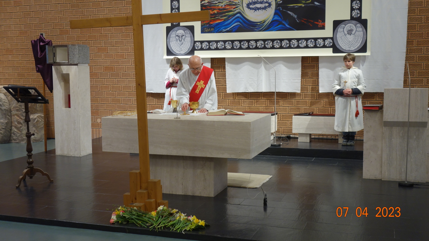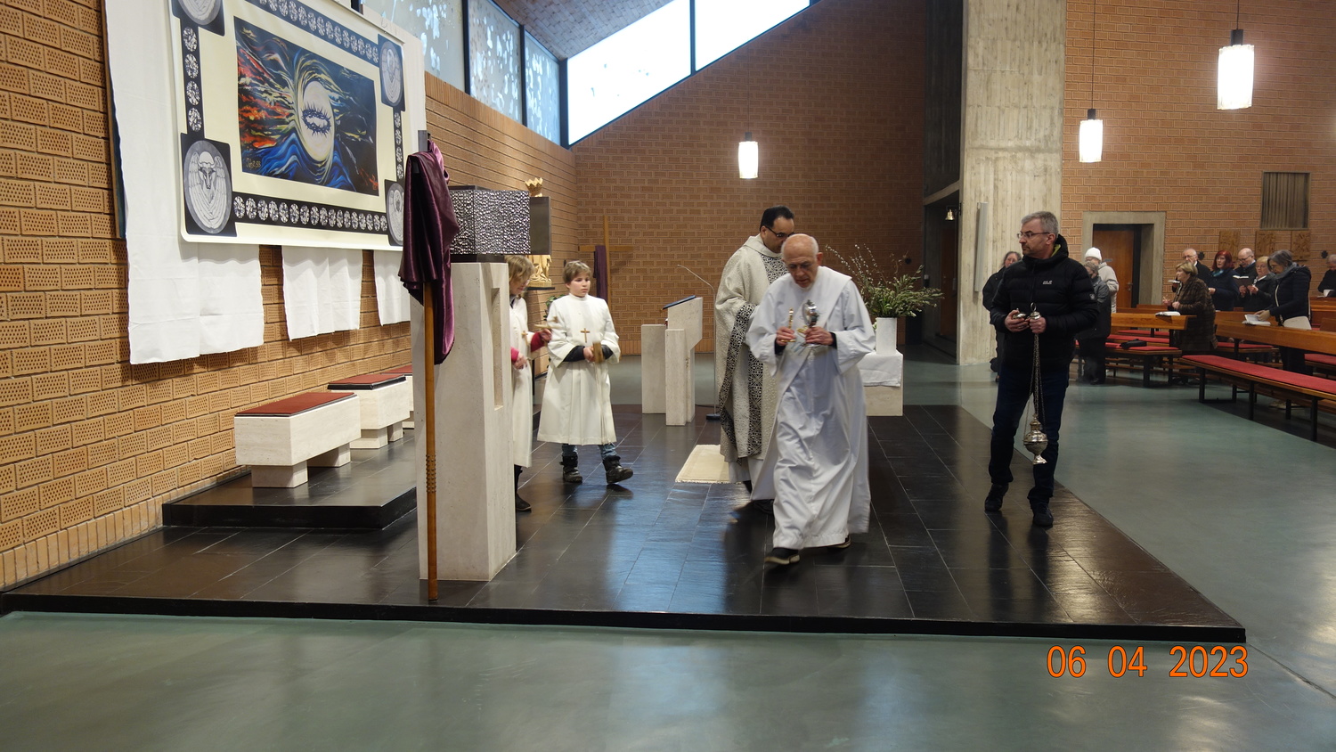 Am 6. April 2023 um 1800 Uhr wurde die Hl. Messe zum letzten Abendmahl gefeiert. Im Anschluss an die Aussetzung des Allerheiligsten, versammelten sich die Gläubigen zur Ölbergstunde.