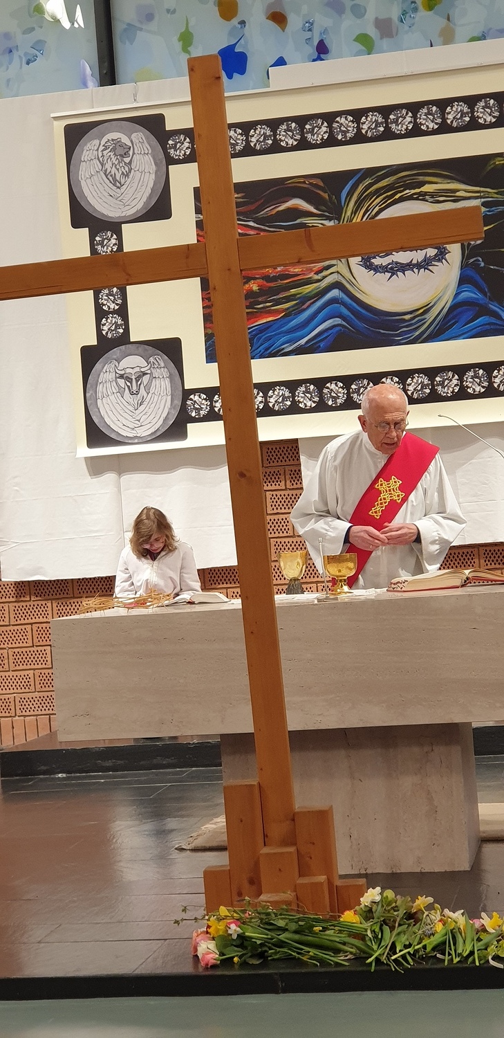 Um 1800 Uhr wurde dann in der "Passion" des Leidens unseres Herrn Jesus Christis nach Johannes gedacht. Die Texte lasen: Pater Kuruvila die Texte von Jesus, Anna Puntigam die sonstigen Texte und Hermann Dittrich trug die Texte, die dem Evangelisten zugeordnet werden vor.