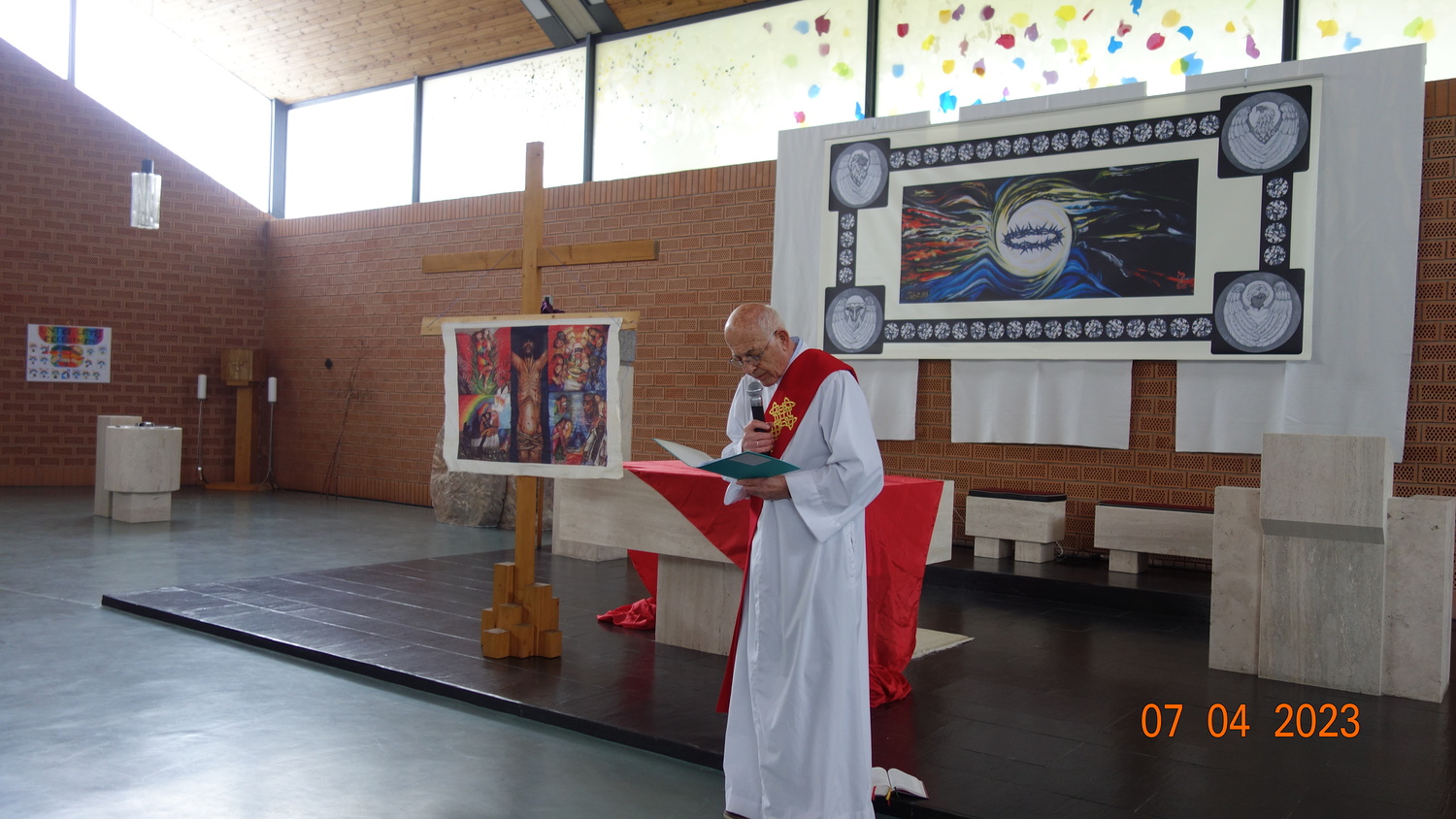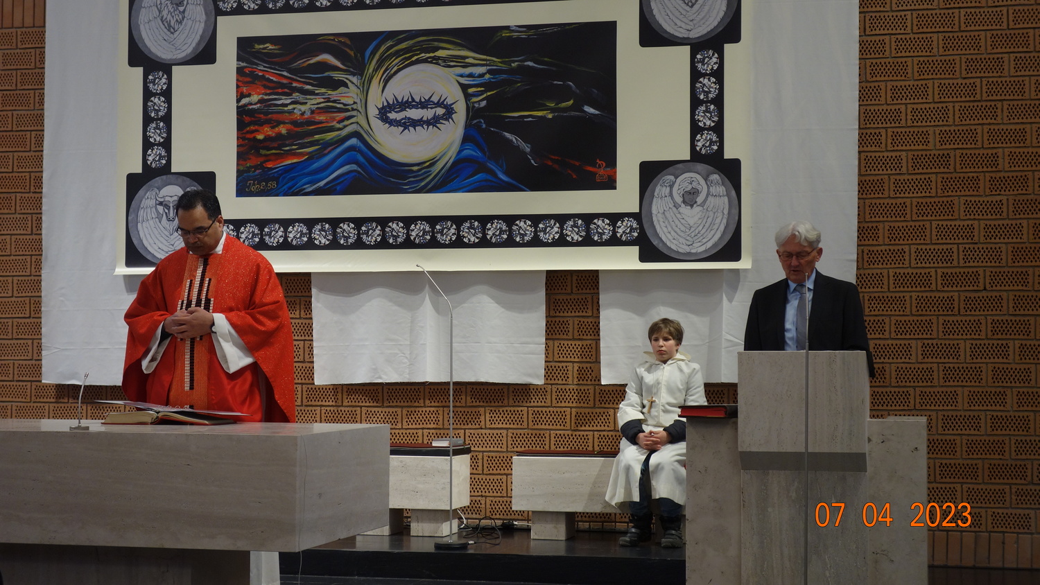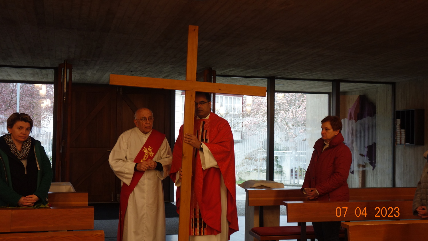 Um 1500 Uhr am Karfreitag, dem 7. April 2023 fand in der Pfarrkirche ein Kreuzweg unter Leitung von Diakon Dr. Peter Zotti statt. Dabei präsentierte Dr. Peter Zotti auch das Misereor Hungertuch. Dann wurden die Gläubigen durch die 14 allgemein bekannten Stationen des Kreuzweges geführt.