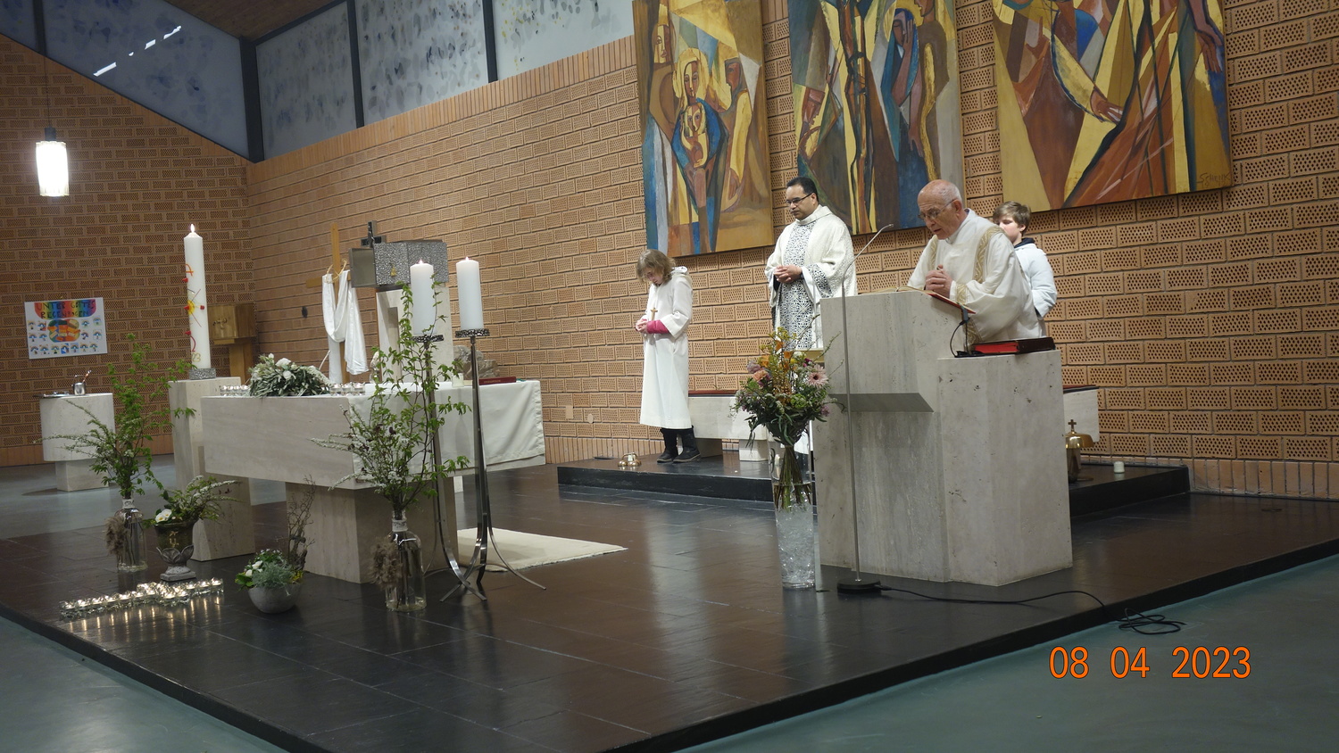 Besonders eindrucksvoll war dann das Gloria, mit dem wunderbaren Lied aus der Schubertmesse, das freudige Geläut der Glocken und die Rückkehr des Lichtes in die Kirche. Auch die Taufwasserweihe, wie die Erneuerung des Taufversprechens war sehr stimmungsvoll und trug zum besonderen Ambiente der Feier bei.