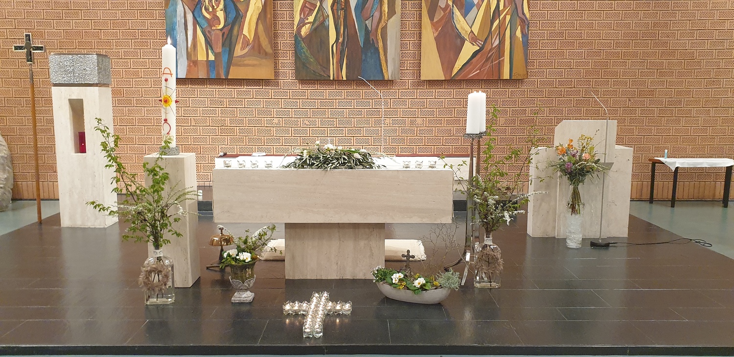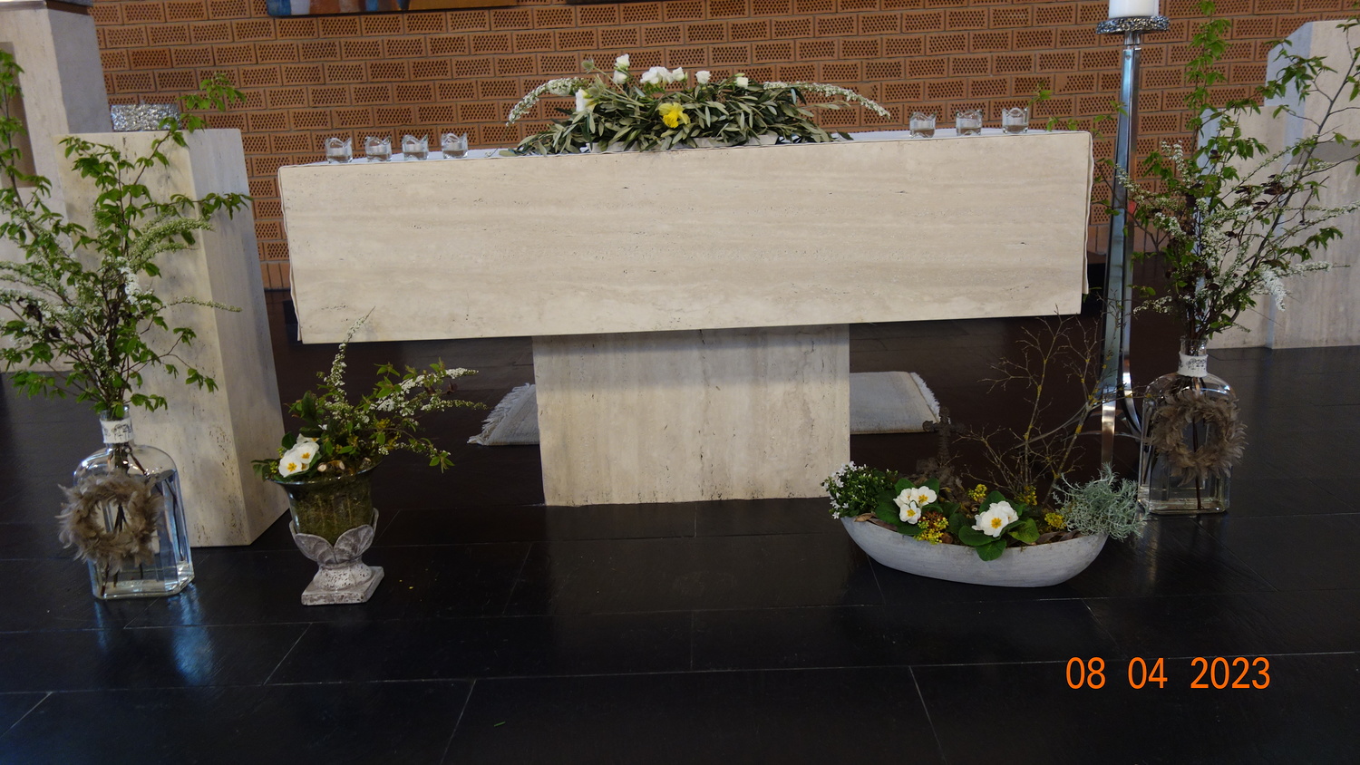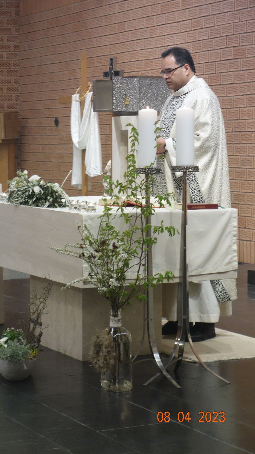 Mit der wunderschönen Dekoration des Kirchenraumes, insbesondere des Altares, wurde dieser besonderen Messfeier der entsprechende Rahmen gegeben. Die vielen liturgischen Teile der Messe, die teilweise karge Beleuchtung mit Kerzen und Lichtern, das festliche Gloria, die eindrucksvollen Lesungen, usw. prägen diesen wunderschönen Gottesdienst.
