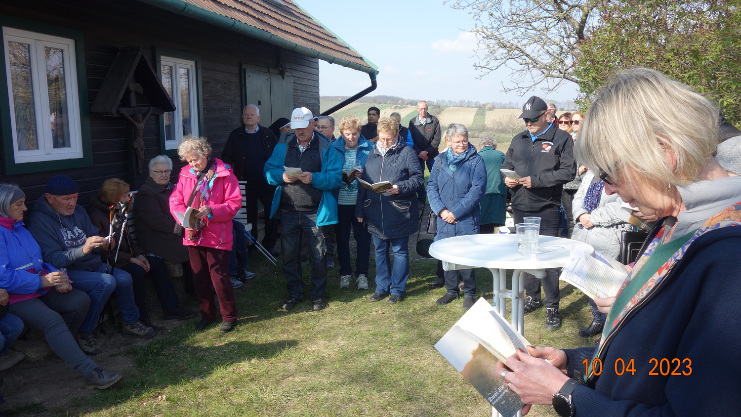 Die Pfarre Bad Sauerbrunn lud zum Emmausgang und viele kamen. Treffpunkt war am Ostermontag, dem 10. April 2023 um 1500 Uhr, bei der Genussquelle Rosalia in der Schubert Allee. Viele Gläubige brachen auf, um den Gang nach Emmaus von zwei Jüngern und ihr Treffen mit Jesus nachzuempfinden.