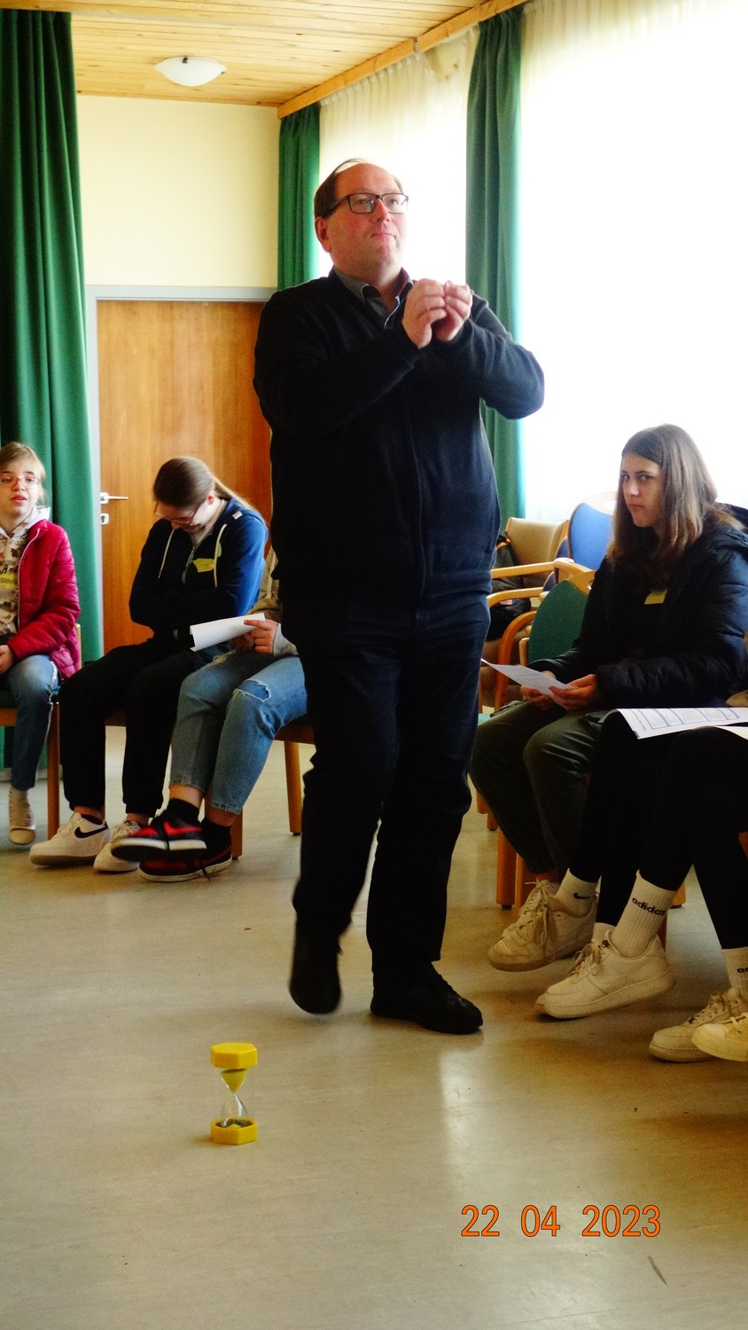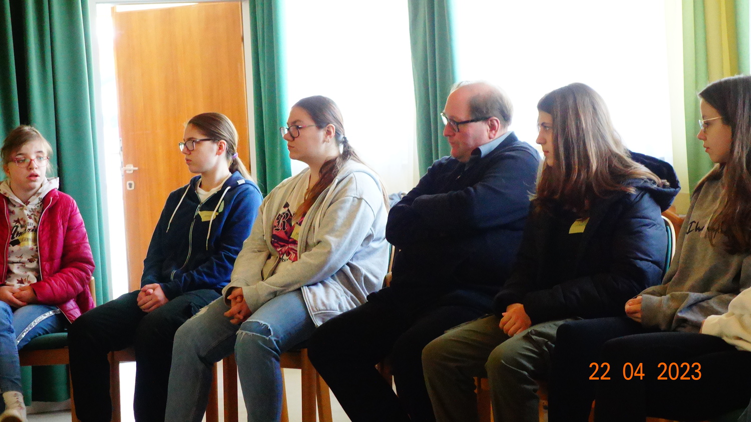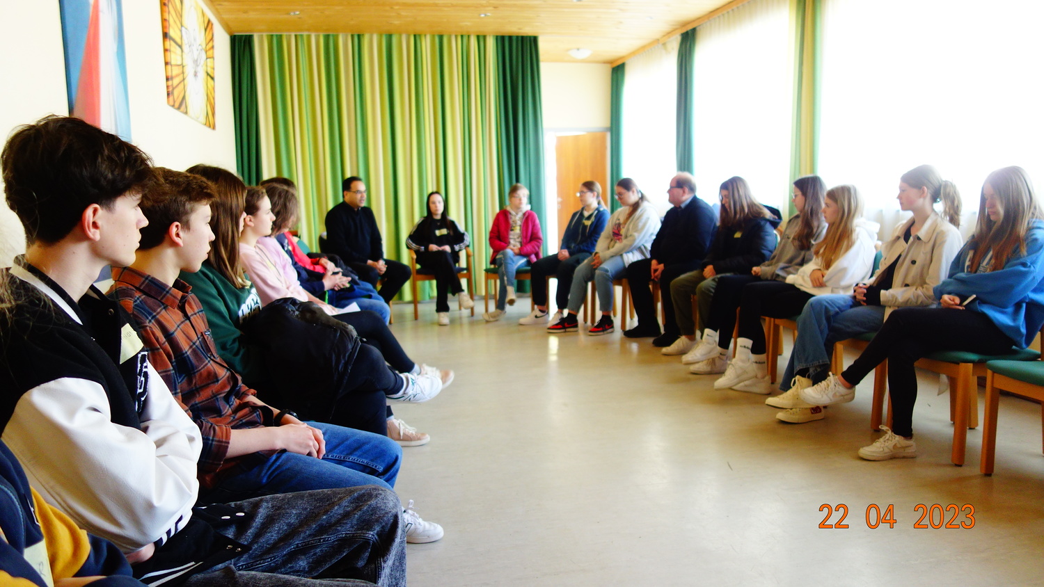 Am 22. April fand der 5. Firmvorbereitungsvormittag statt. Diesmal war - neben P. Kuruvila - auch unser Firmspender Pfarrer Roman Schwarz anwesend. Zu Beginn wurde der Ablauf der Firmung sowie die musikalische Gestaltung erörtert. Erfreulicherweise haben sich sie Firmlinge bereit erklärt, die Messe mitzugestalten.