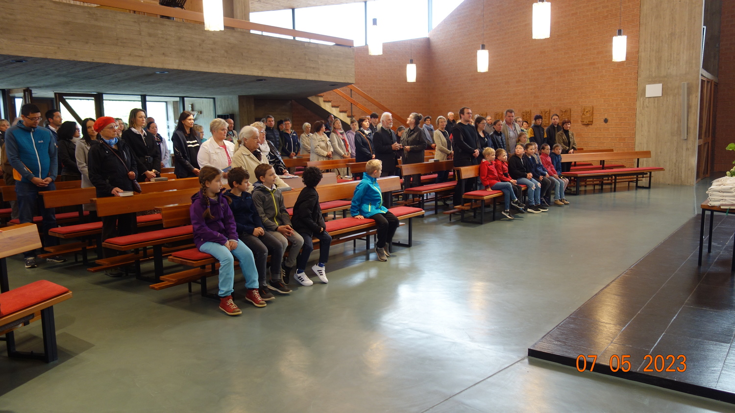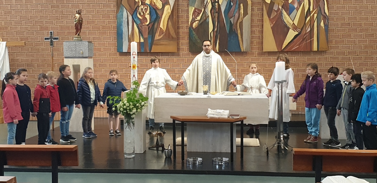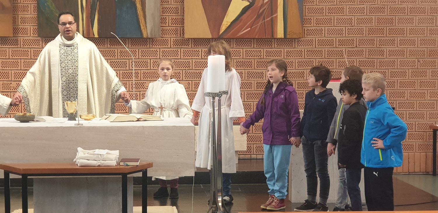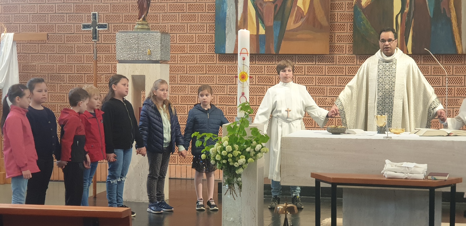 Gemeinsam mit allen Kindern sangen die Erstkommunionkinder das "Vater unser" am Altar.