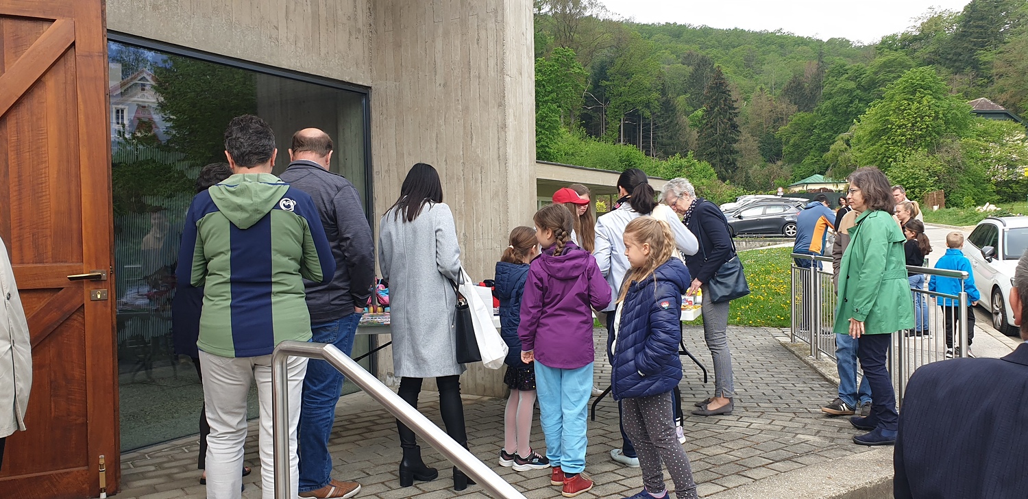 Es herrschte reger Betrieb am Flohmarkt der Firmlinge, denn die Firmlinge boten sehr viele sinnvolle Gegenstände an. Darüber hinaus wollten manche Kirchenbesucher, vom Spielzeug bis zu Gebrauchsgegenständen, Sachen am Flohmarkt erwerben, um so die Firmlinge bei ihrer Benefiz-Aktion zu unterstützen.