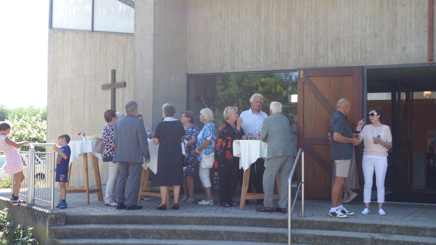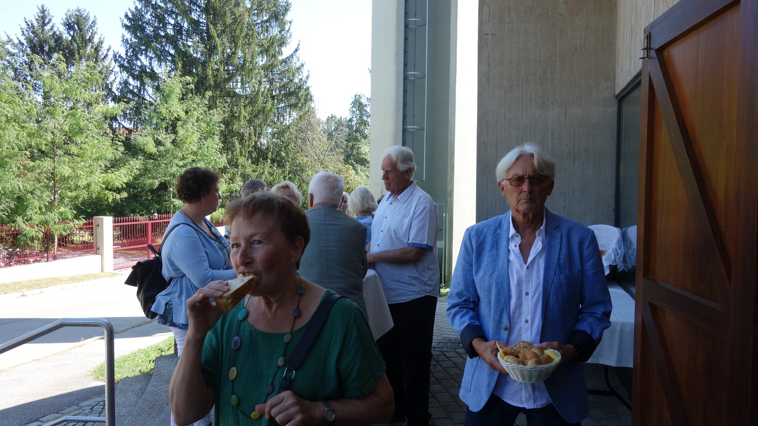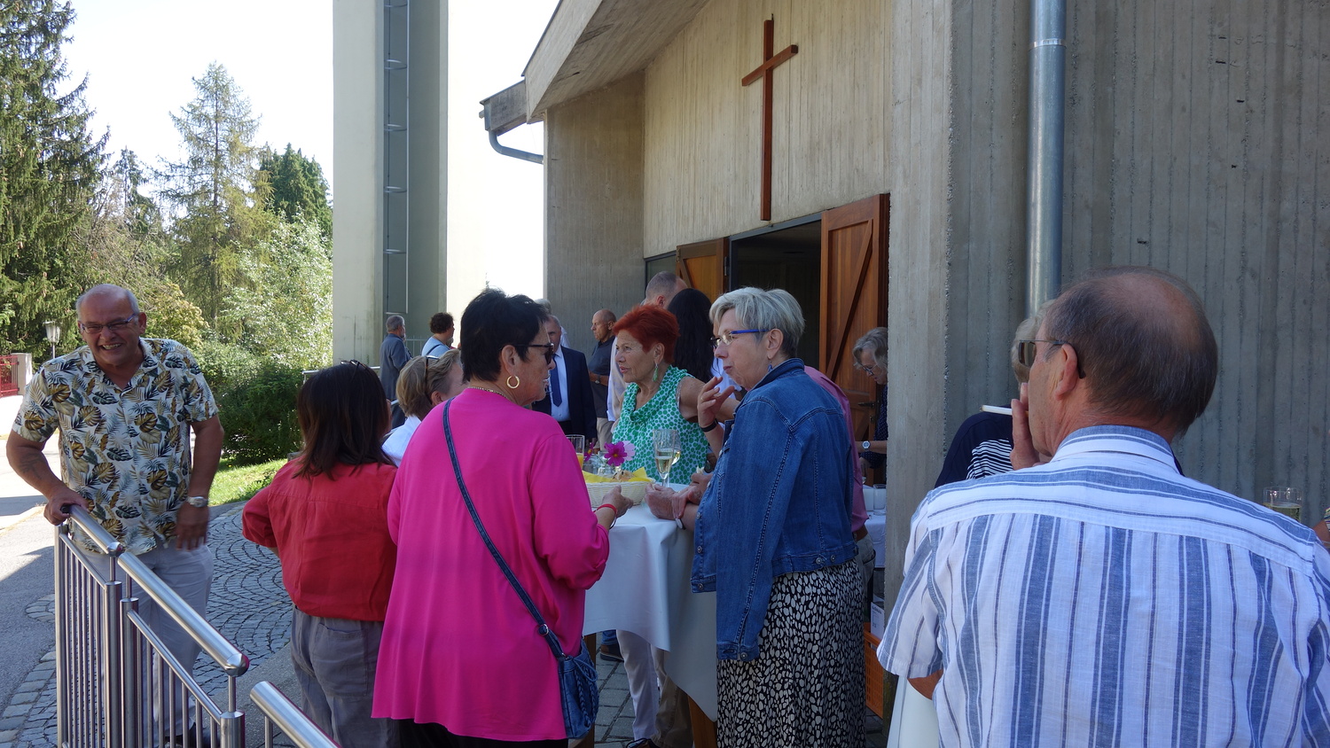 Im Anschluss an die Hl. Messe wurde zu einer Agape geladen, die sich großen Zuspruchs erfreute und bei der es den Gläubigen möglich war mit dem Jubilar zu sprechen. So war es auch den Teilnehmern an der Hl. Messe und der Agape möglich Pater Kuruvila zu seinem Jubiläum zu gratulieren.