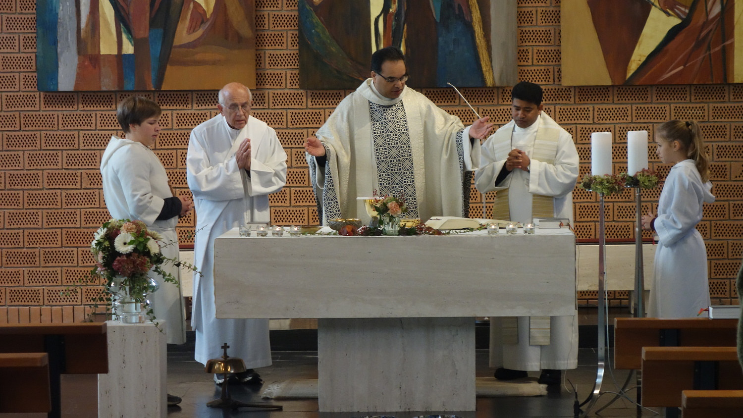 Am Ende des Gottesdienstes erteilte Pater Kuruvila den Segen - ganz besonders erwähnt wurden auch hier die Jubilare. Im Anschluß an den Segen luden Pater Kuruvila und die Pfarre Bad Sauerbrunn die Jubilare zu einer kleinen Feier in den Kommunikationsraum der Kirche.