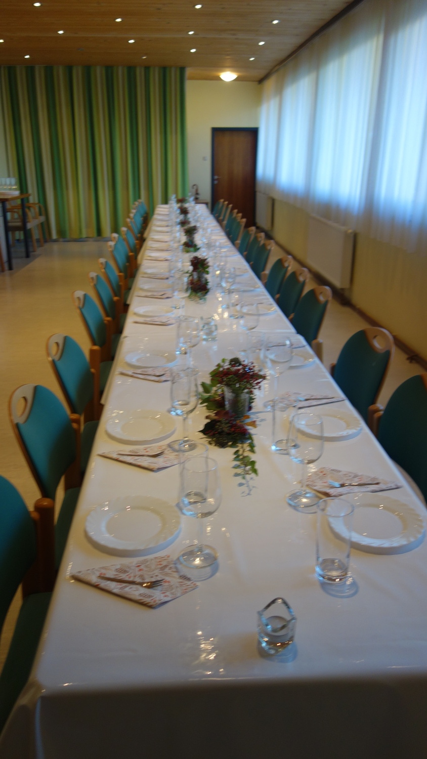 Auch hier fanden die Jubilare einen festlich geschmückten Raum vor. Es gab Aufstrichbrote, mit schmackhaten Aufstrichen von Elisabeth Hanner und Nadja Hutter. Viele Pfarrmitglieder ließen es sich nicht nehmen, für die Jubilare dieses Jahres, ihre Backkünste unter Beweis zu stellen und so gab es sehr delikate Mehlspeisen. Es gab so viel davon, dass den Jubilaren auf Wunsch auch Mehlspeise für eine Feier zu Hause mitgegeben werden konnte.