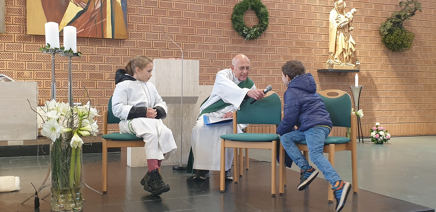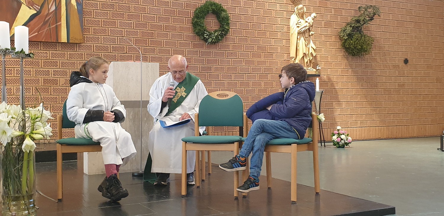 Auch während der Hl. Messe wurden Inhalte von den Kindern gelesen bzw. wurden Szenen von ihnen gespielt. Mit Diakon Dr. Peter Zotti wurde der Inhalt der Lesung spielerisch erarbeitet. Auch die Fürbitten wurden von den Kindern vorgetragen.