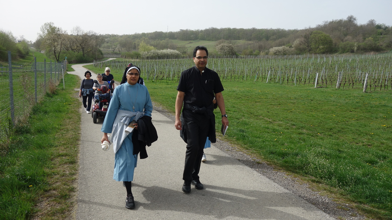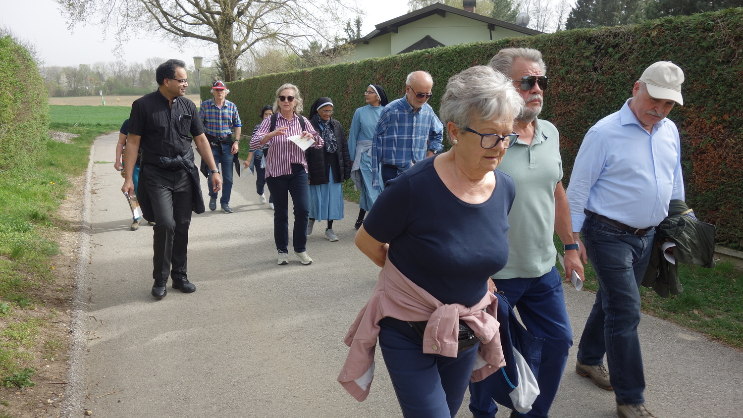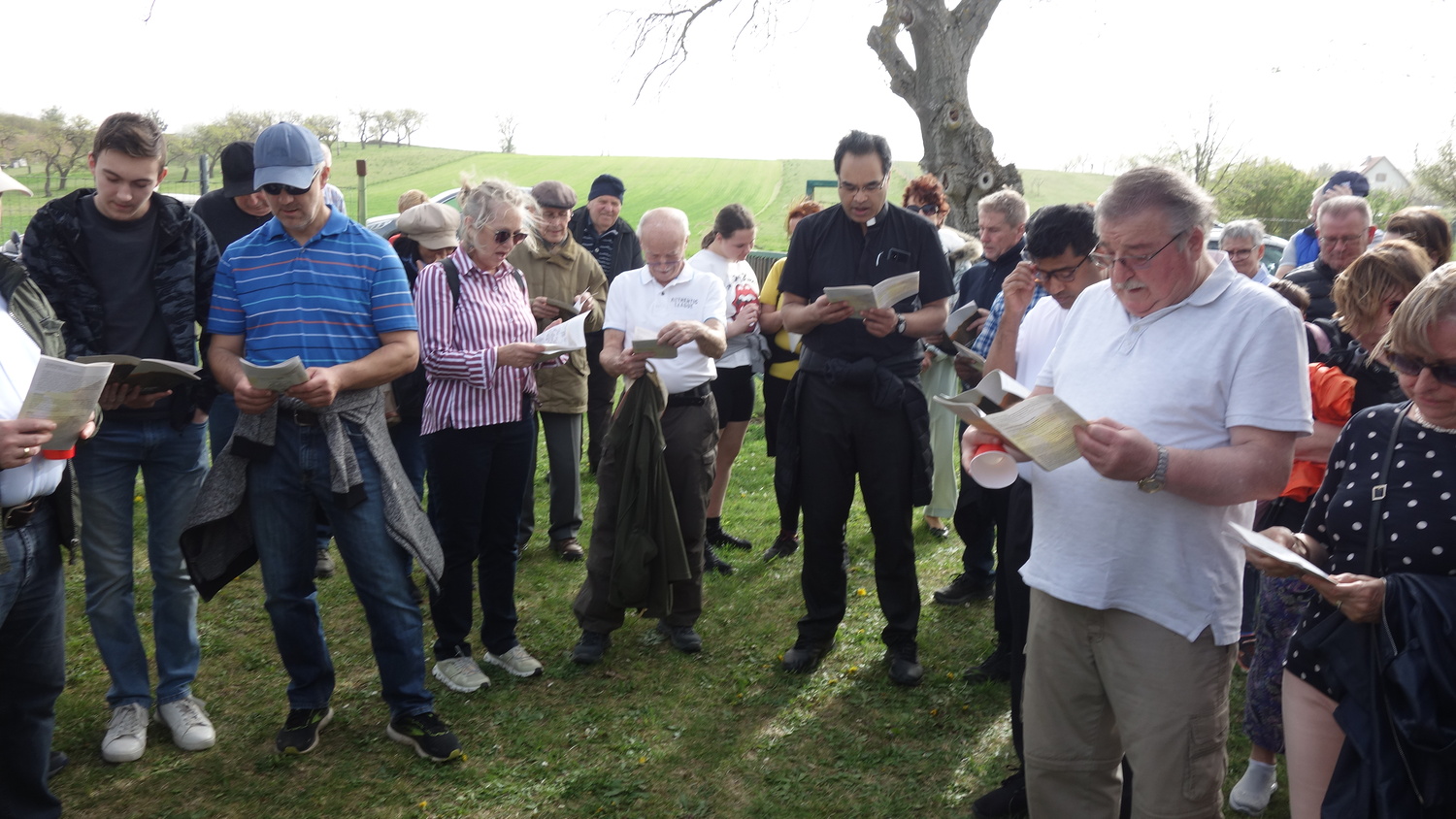 Eine größere Gruppe war aus Bad Sauerbrunn mit Pater Kuruvila in Richtung Satzfeld weggegangen, um sich dort mit Gläubigen aus den Pfarren Sigless, Pöttsching und Krensdorf zu treffen, mit Pater Jakob, Pater Rijo und mit Diakon Andreas Grieszler, um gemeinsam eine Andacht zu feiern.