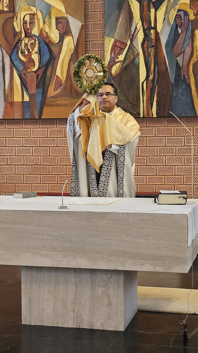 Für den 30. Mai, Fronleichnam, hatte die Pfarre Bad Sauerbrunn um 10 Uhr in die Pfarrkirche zur Hl. Messe und zur Fronleichnamsprozession eingeladen. Es waren sehr viele Gläubige der Pfarrgemeinde Bad Sauerbrunn und Gäste in die Kirche gekommen um Fronleichnam zu feiern. Auch eine Abordnung der Freiwillgen Feuerwehr von Bad Sauerbrunn und des Burchenvereines, konnte Pater Kuruvila zur Hl. Messe begrüßen.