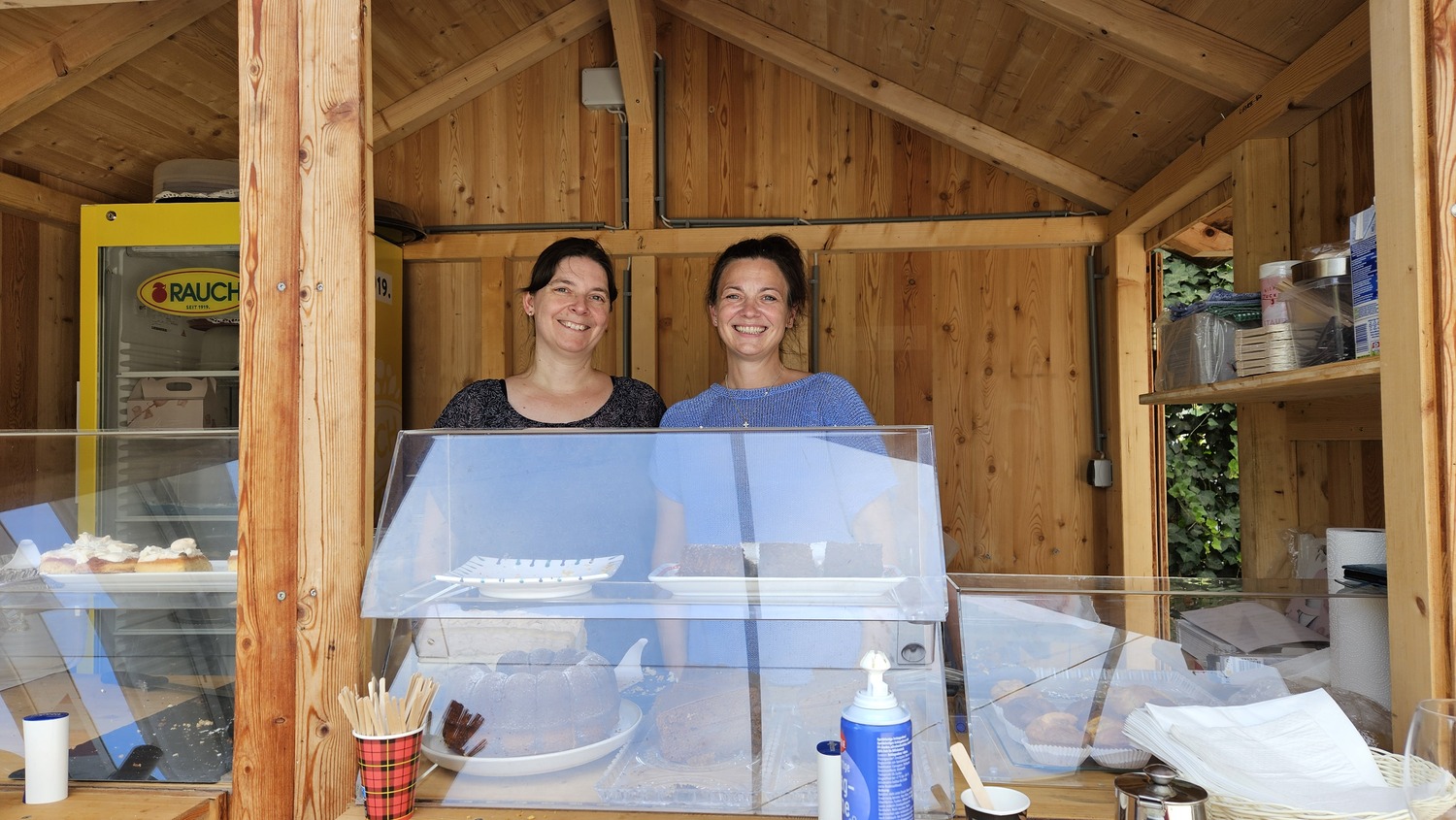 Pfarrfest: Mehlspeisausgabe mit Nadja und Carina