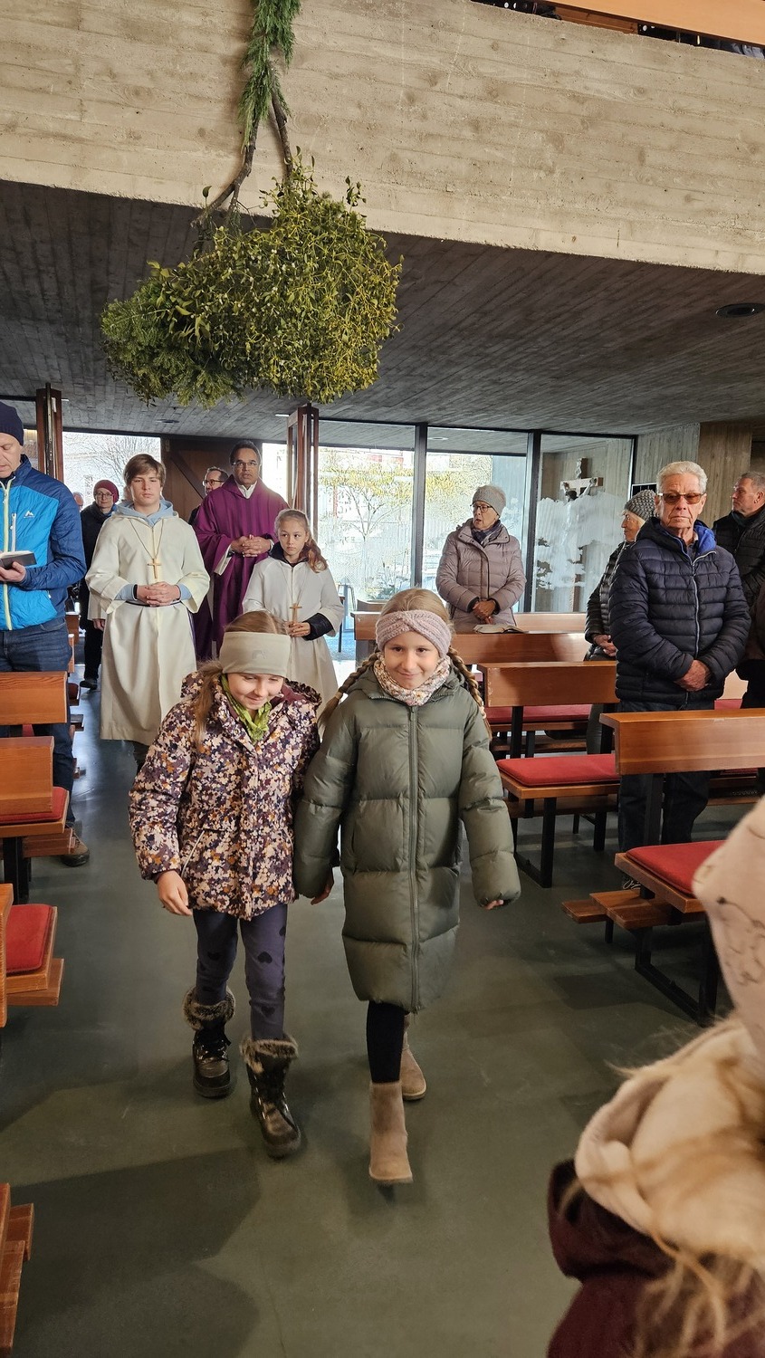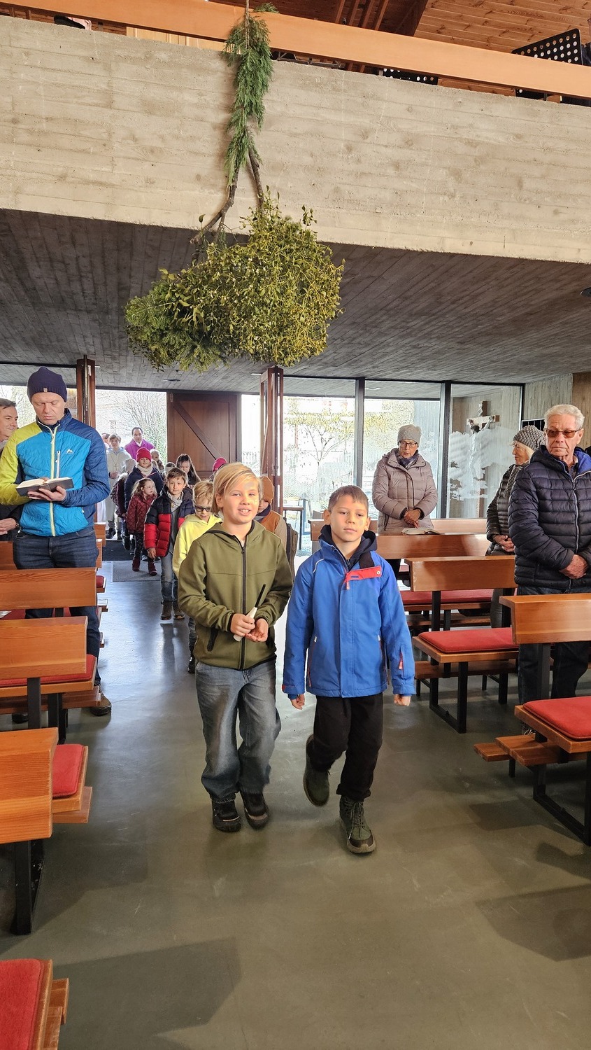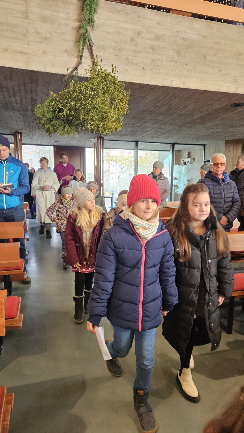 Die Erstkommunionkinder nahmen sehr engagiert am Festgottesdienst teil. Adventkränze hatten sie am Vortag im Kommunikationsraum mit ihren Eltern oder Großeltern gebastelt und brachten diese zur Segnung mit. Auch viele Gläubige aus der Pfarre, hatten ihre Adventkränze zur Segnung mitgebracht.