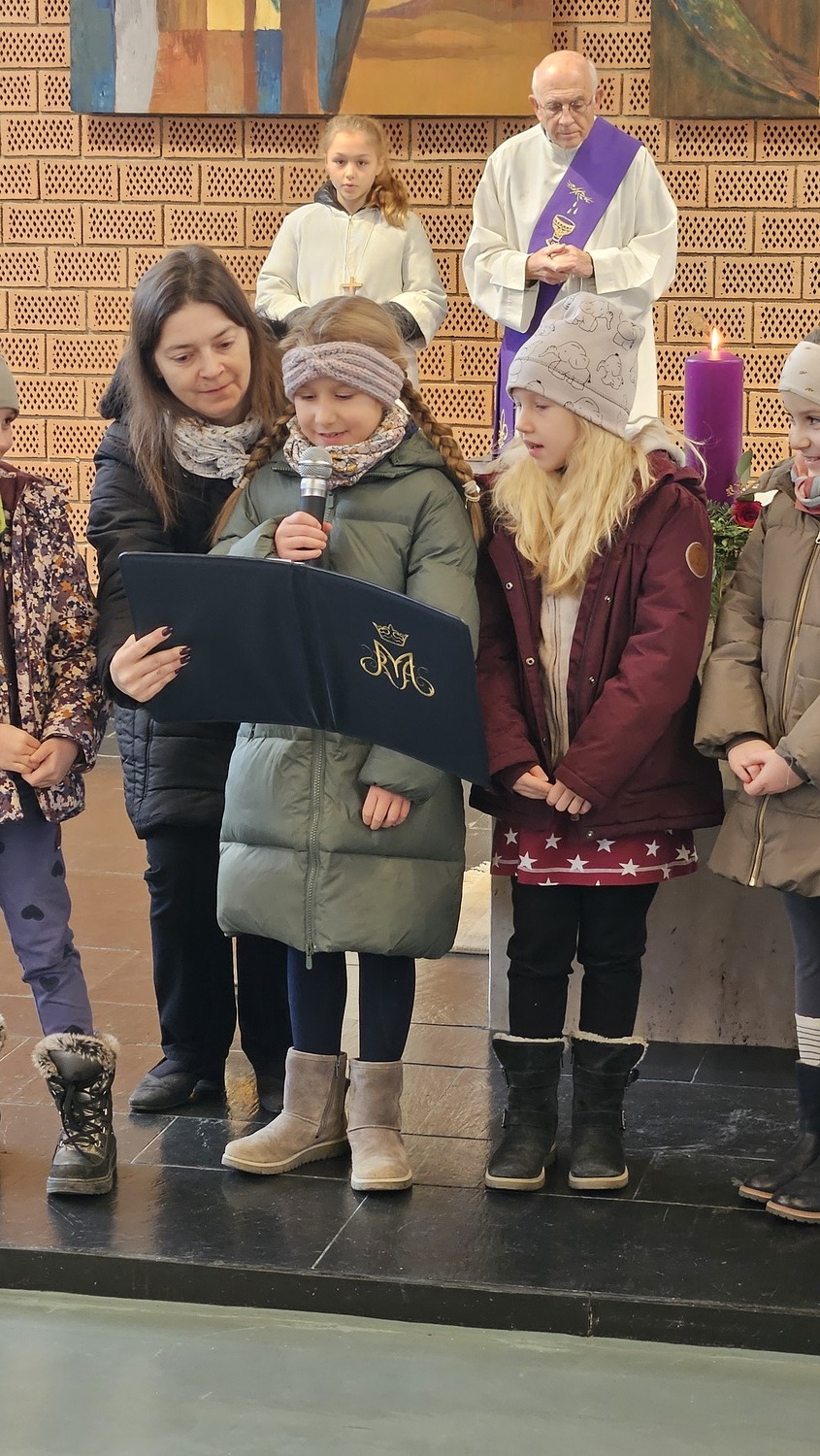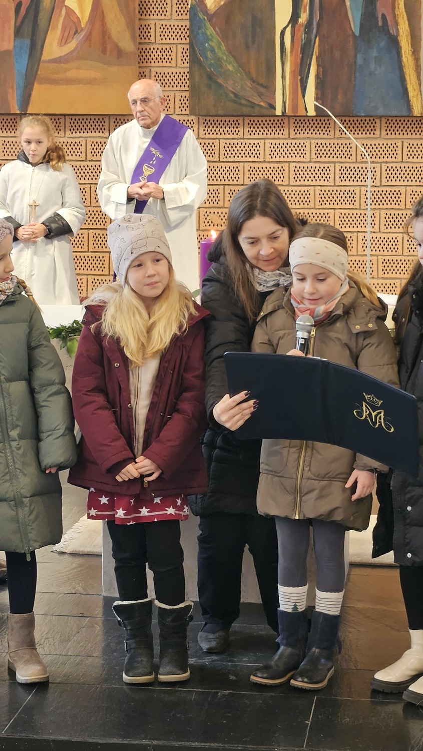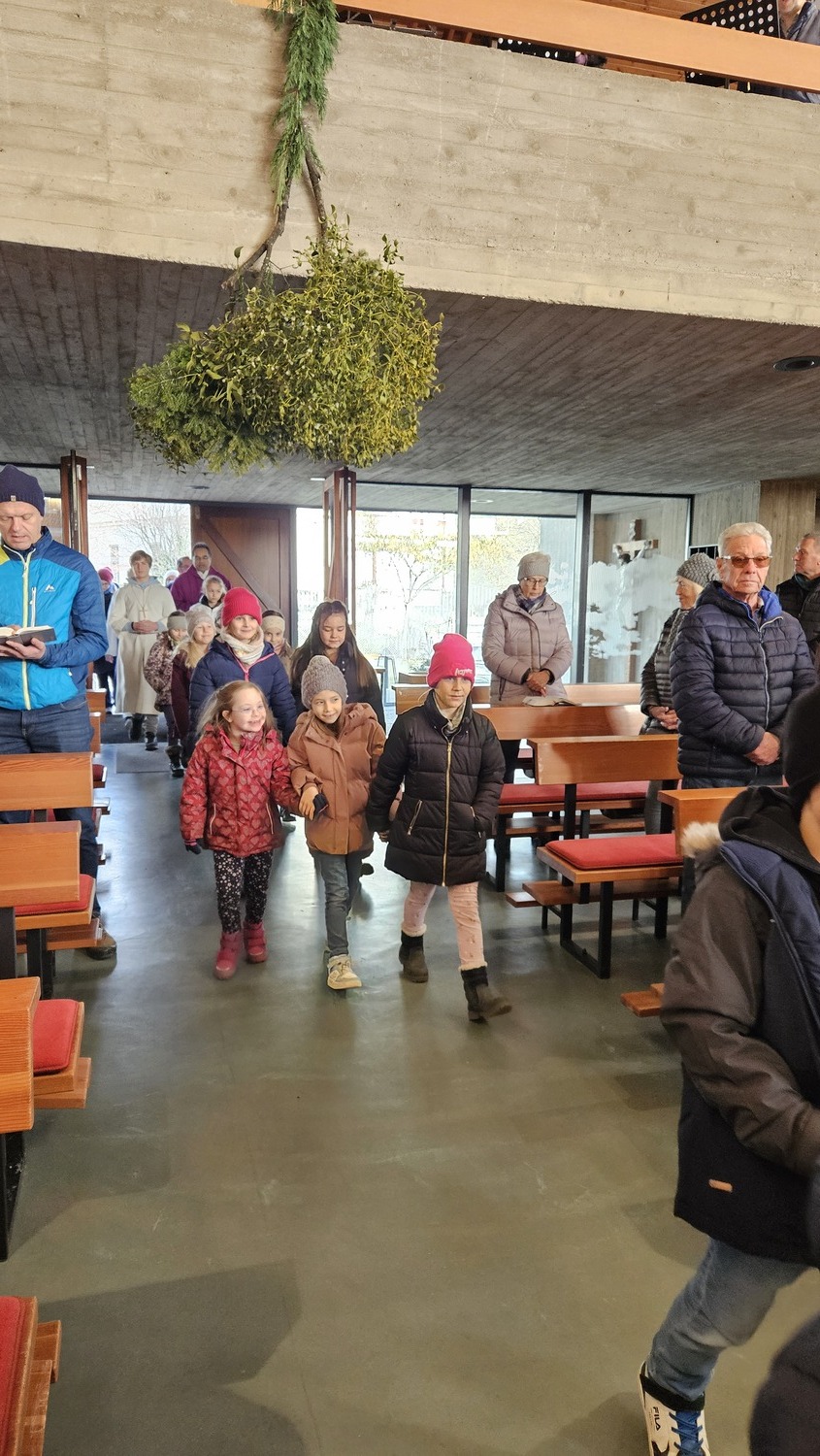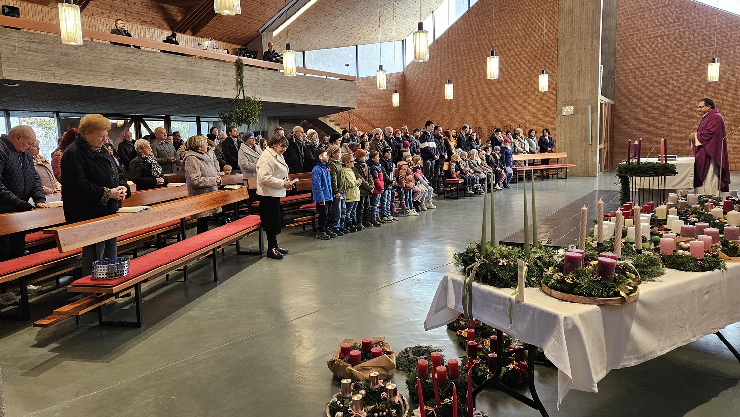 Die Erstkommunionkinder nahmen sehr engagiert am Festgottesdienst teil. Adventkränze hatten sie am Vortag im Kommunikationsraum mit ihren Eltern oder Großeltern gebastelt und brachten diese zur Segnung mit. Auch viele Gläubige aus der Pfarre, hatten ihre Adventkränze zur Segnung mitgebracht.
