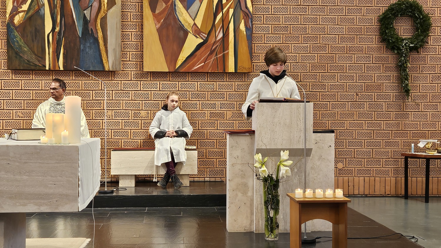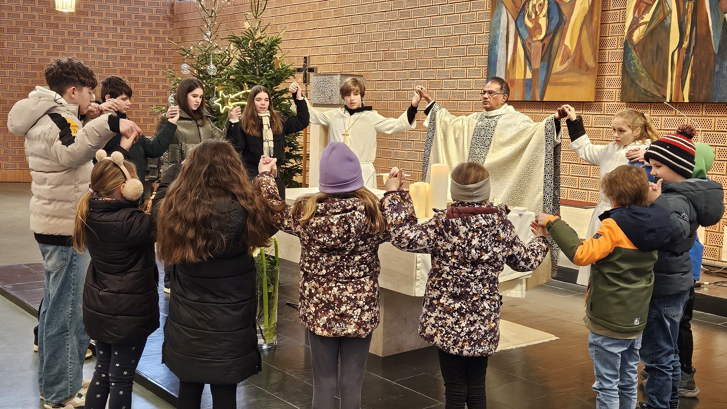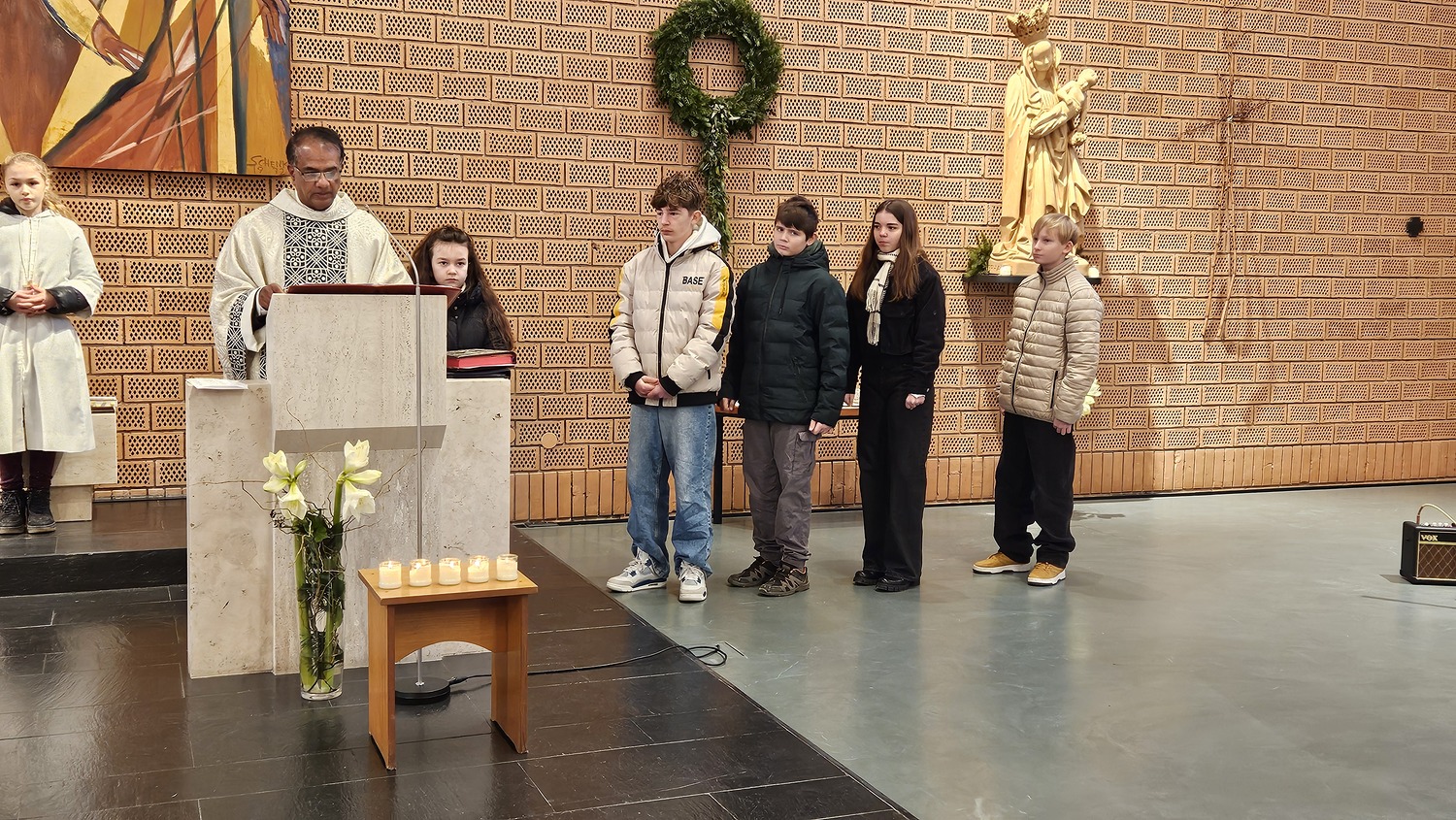 Als besonderes Zeichen dieses Tages, wurde den Kindern und Jugendlichen am Taufbrunnen, durch Pfarrer Aby, ein Segen erteilt. Die Kinder und Jugendlichen nahmen engagiert und mit sichtlicher Freude an der hl. Messe teil.