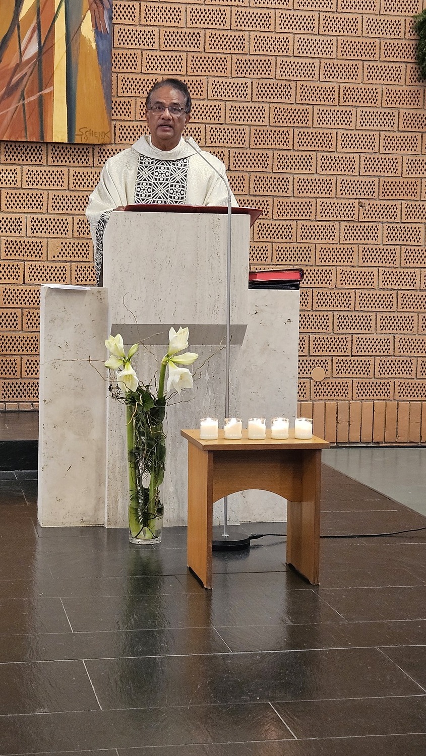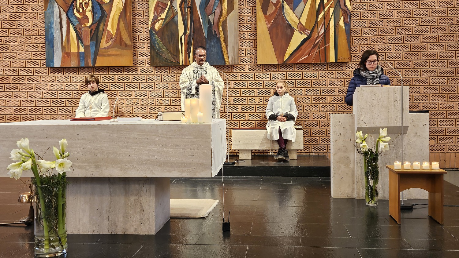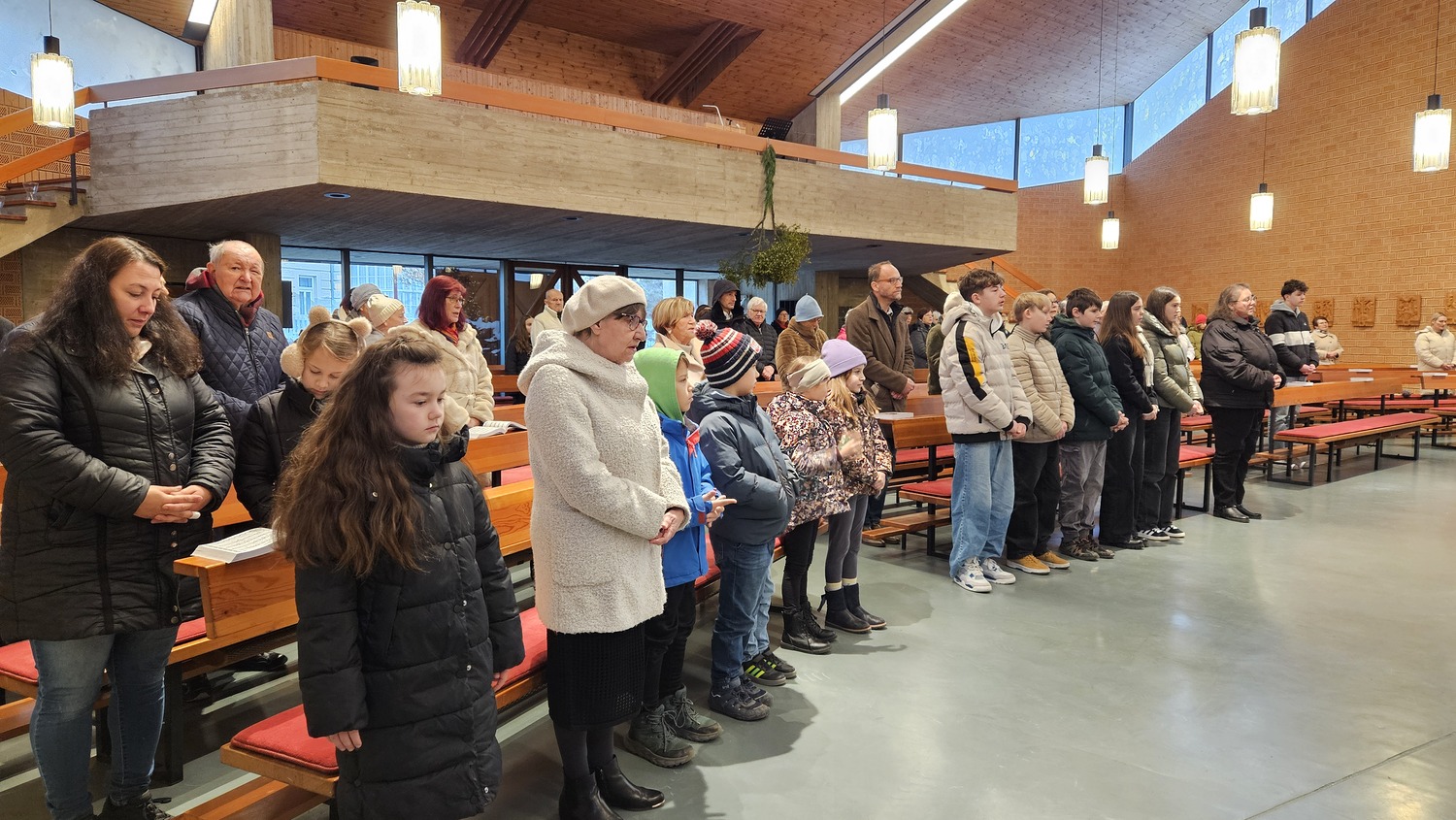 Als besonderes Zeichen dieses Tages, wurde den Kindern und Jugendlichen am Taufbrunnen, durch Pfarrer Aby, ein Segen erteilt. Die Kinder und Jugendlichen nahmen engagiert und mit sichtlicher Freude an der hl. Messe teil.