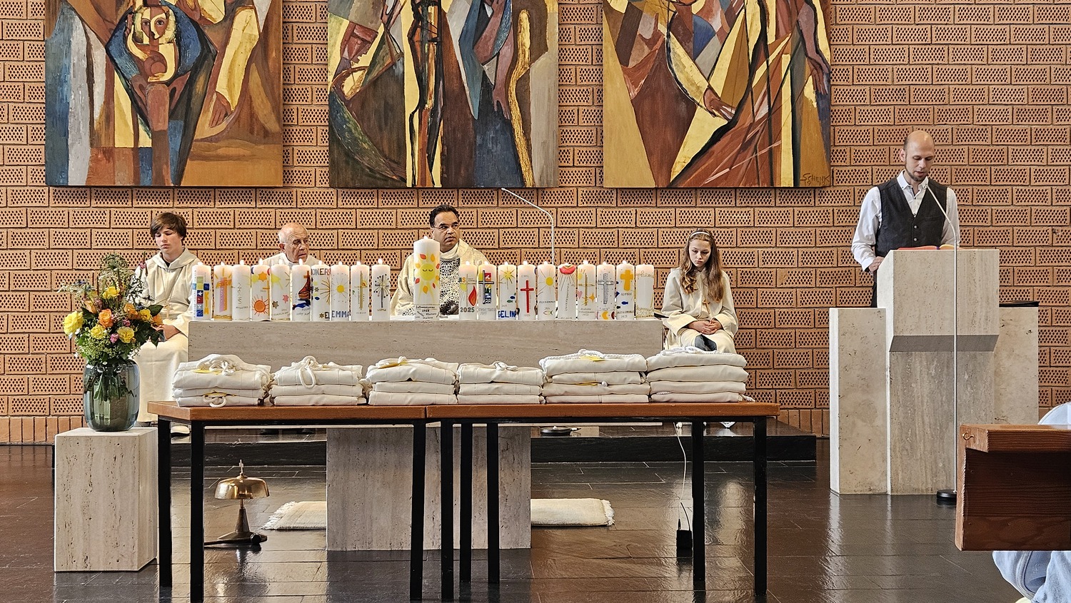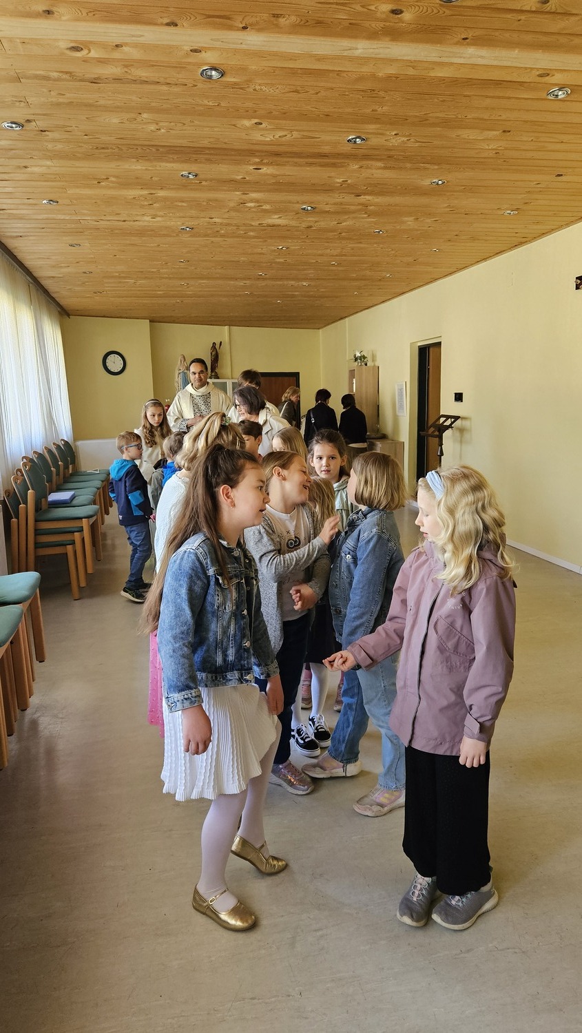 Am 25. Mai 2025 während der 10 Uhr Messe, wurden den Erstkommunionkindern die Kutten für die Erstkommunionfeier übergeben. Pater Kuruvila segnete die Kutten und übergab sie jedem einzelnen Erstkommunionkind.