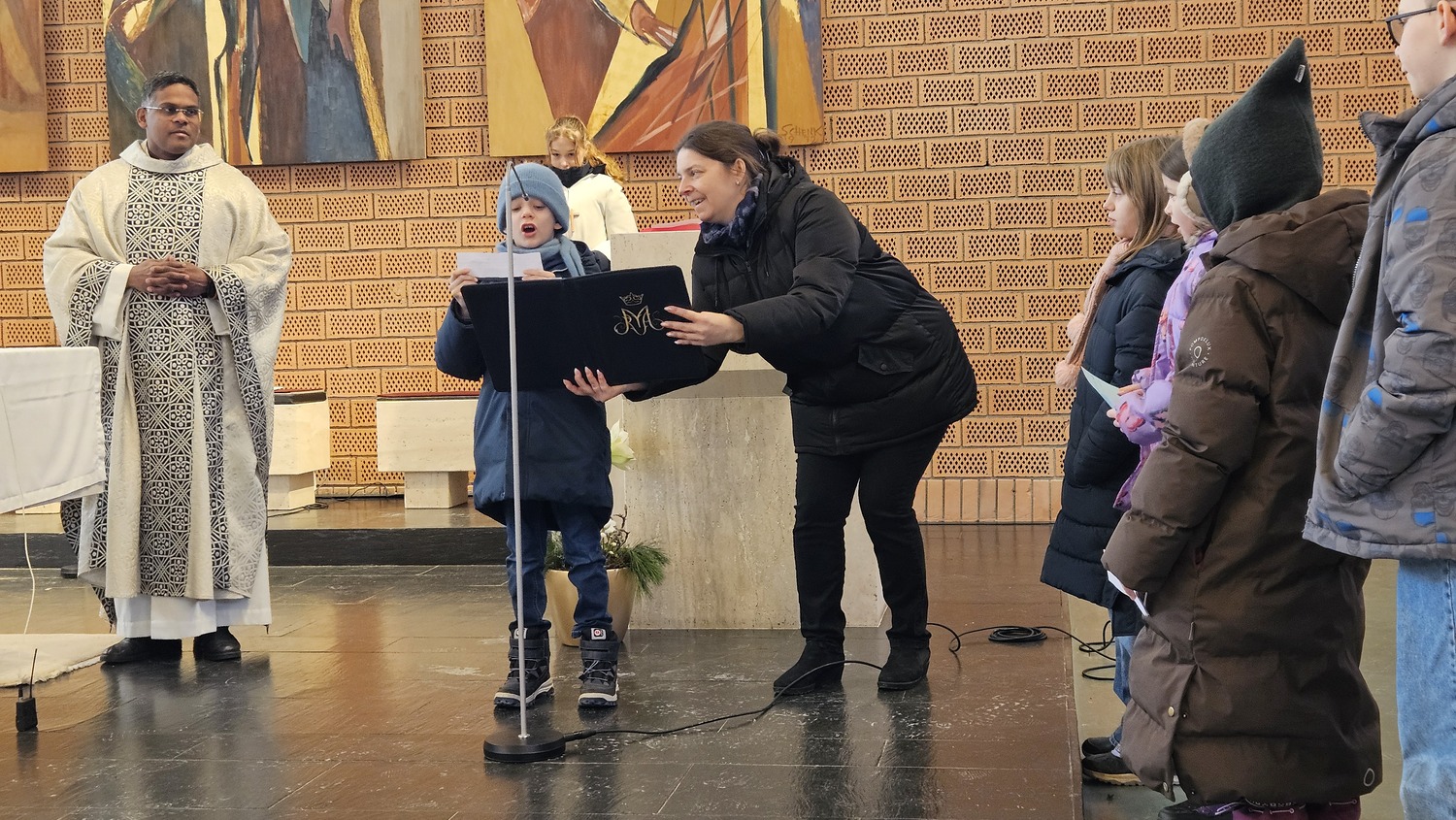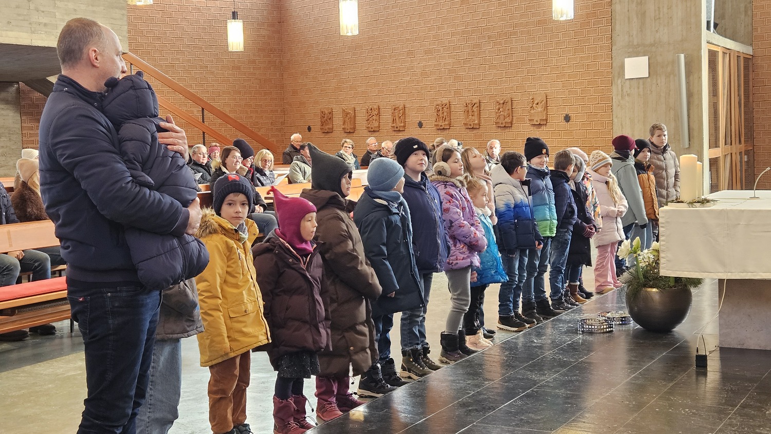Gemeinsames Vater Unser mit den Kindern am Altar