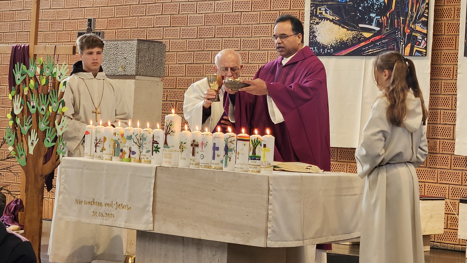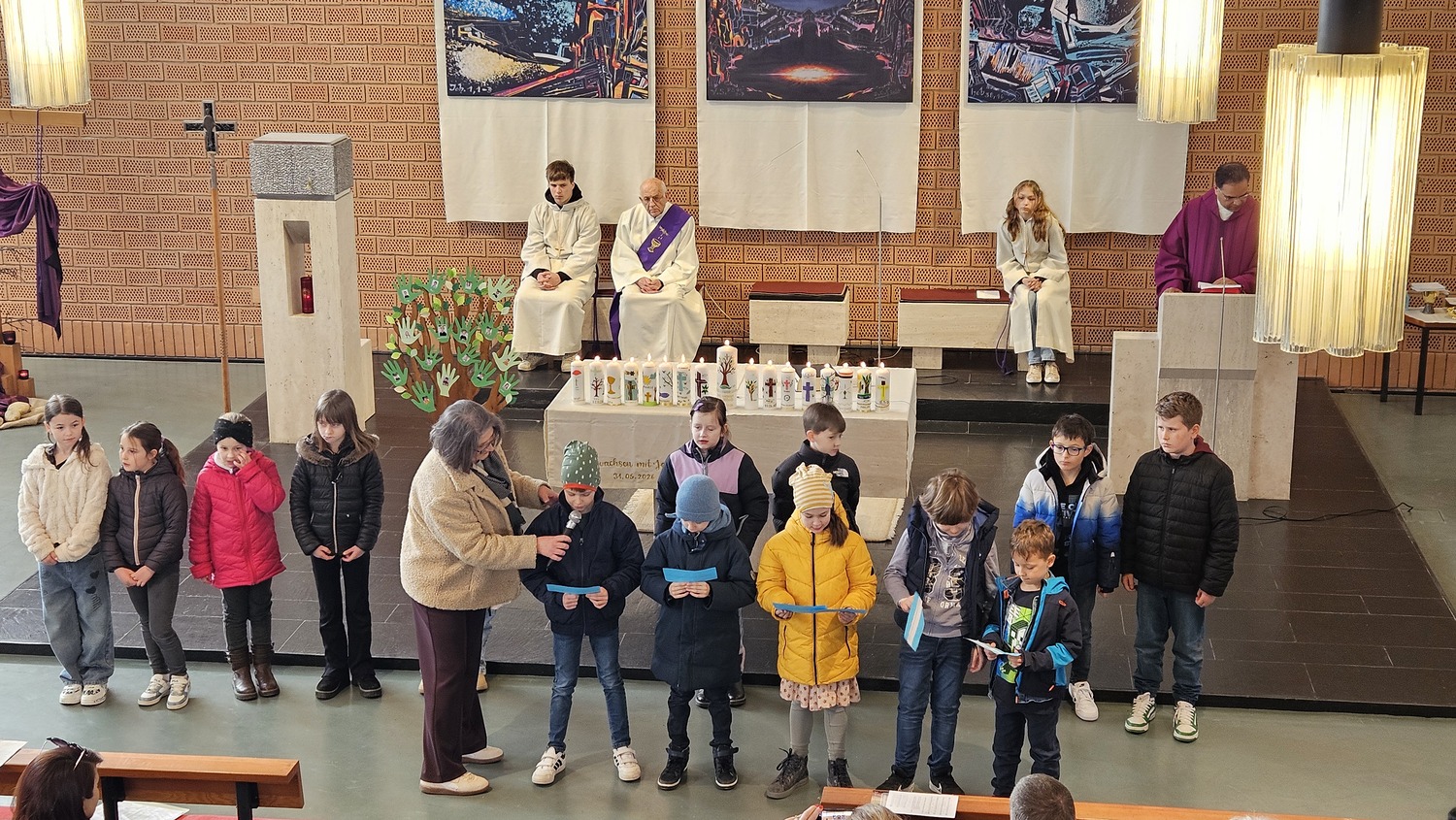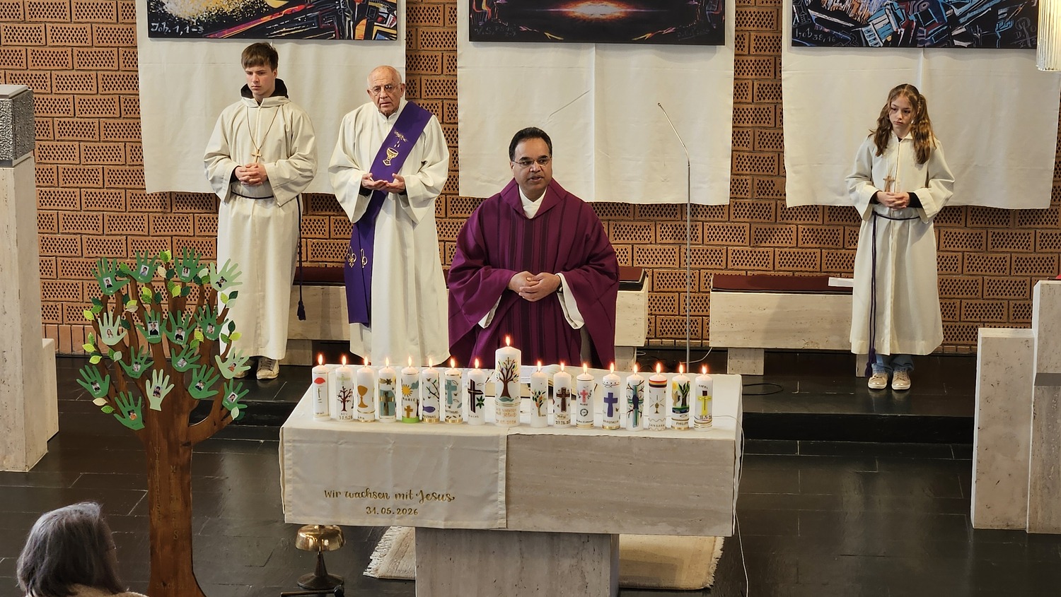 Sechzehn Kinder der Pfarrgemeinde werden für die Feier der Erstkommunion am 31. Mai 2026 vorbereitet. Sie haben sich als Motto für die Vorbereitung und das Fest der Hl. Erstkommunion "Wir wachsen mit Jesus" gegeben. Während der Vorbereitung zur Erstkommunionfeier, hatten die Erstkommunionkinder bereits die Erstkommunionkerzen selbst gestaltet, welche bei diesem Gottesdienst am Altar standen. Im Rahmen der Vorbereitung, nahmen die Erstkommunionkinder am Fest der "Taufe des Herrn", auch am Kindersegen teil.