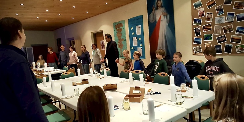 Gemeinsam mit den Kindern und ihre Eltern werden Kerzen gebastelt.