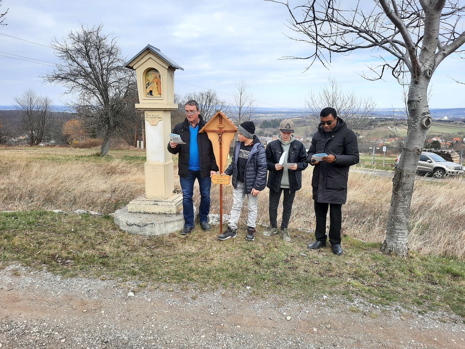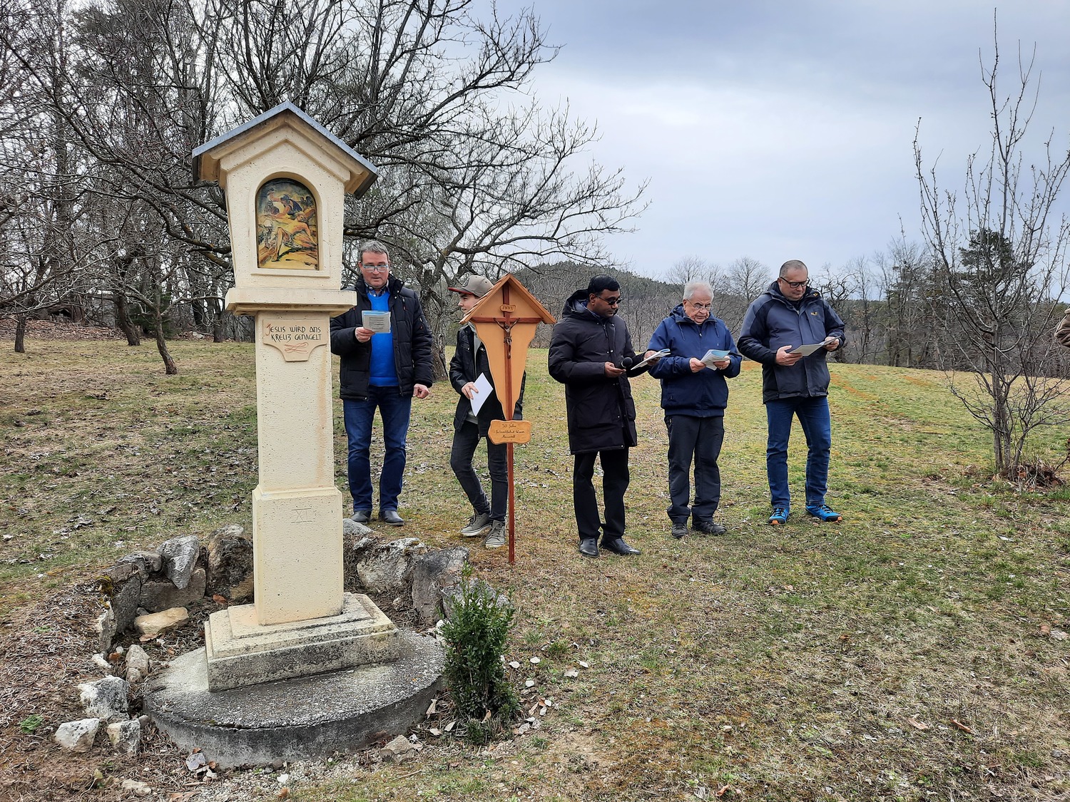 Am dritten Fastensonntag trafen sich rund 90 Pfarrangehörige, um gemeinsam bei den einzelnen Stationen an den Leidenweg Jesu zu denken. Mit dem Kreuz voran die Kreuzwegstsationen in der Natur zu gehen, war bestimmt für alle Teilnehmer eine gute Vorbereitung auf das kommende Osterfest.