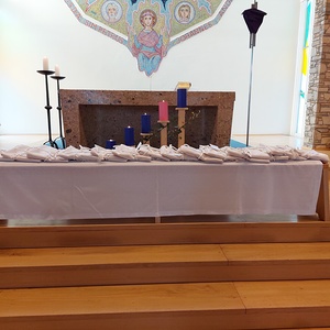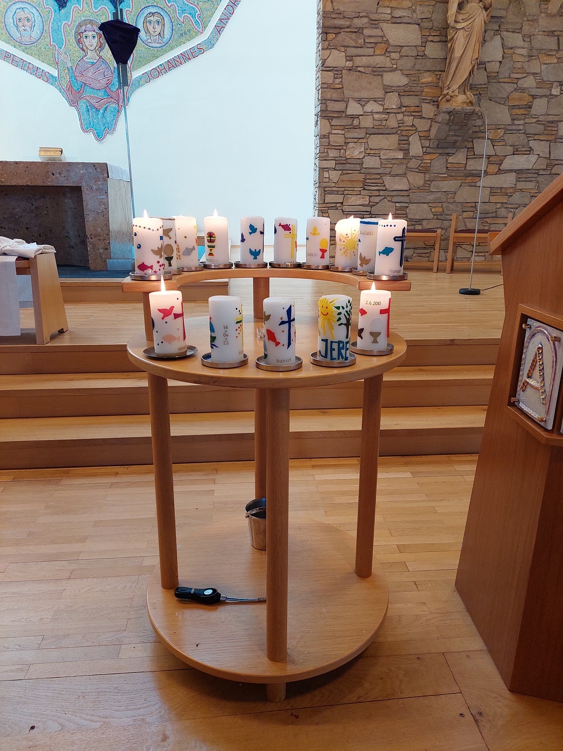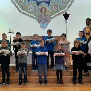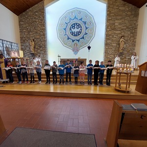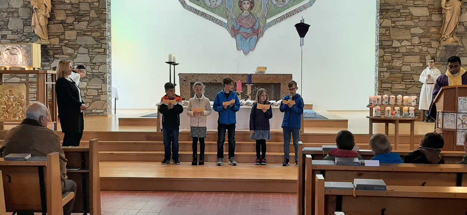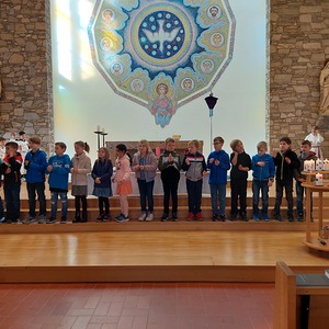 Am 5. Fastensonntag wurden im Rahmen einer feierlichen Messe, nach der Segnung durch P. Jomon, die weißen Kutten an die Erstkommunionkinder übergeben.