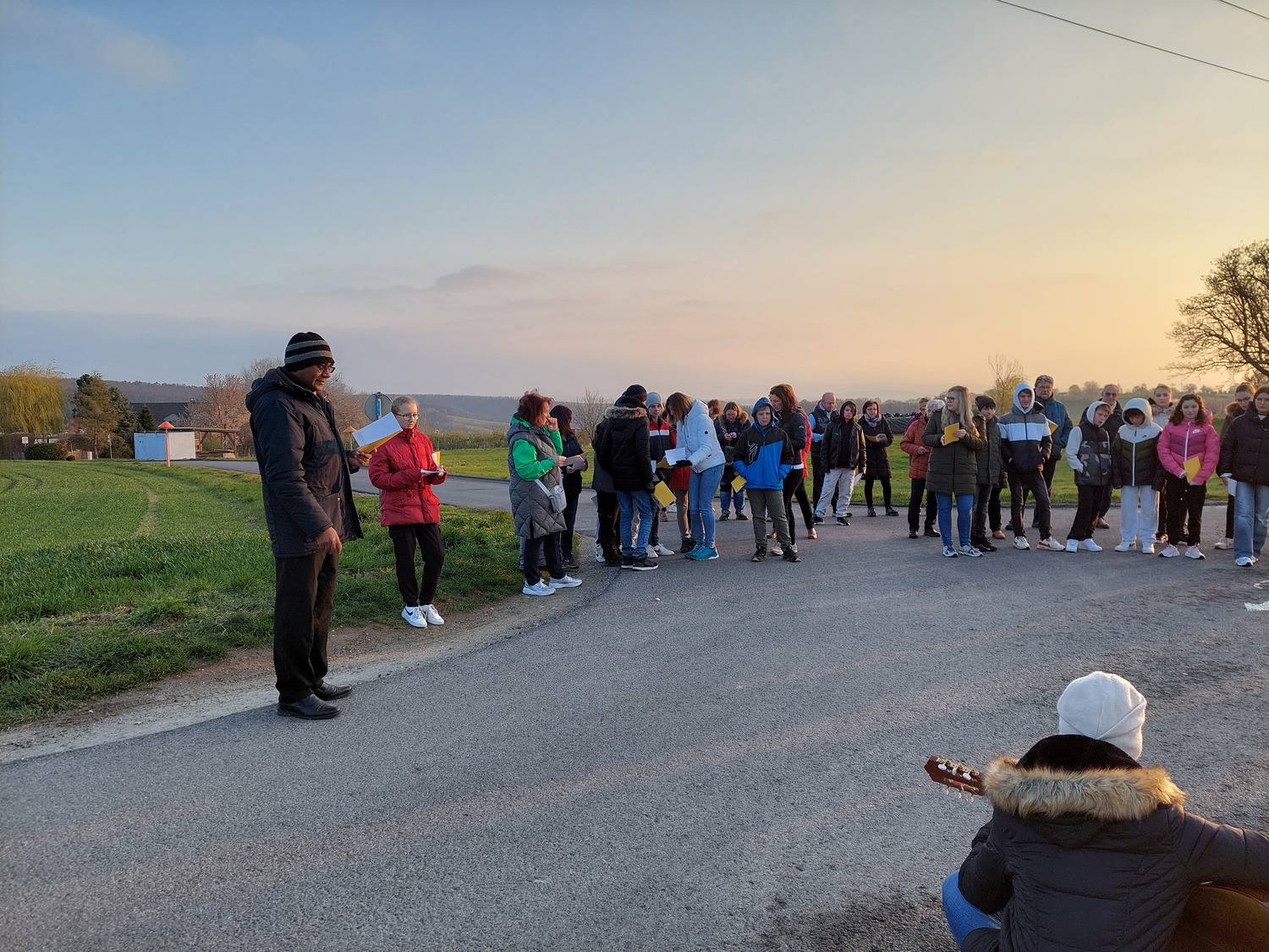 Viele Gläubige und eine große Anzahl von Firmlingen machten sich am Ostermontag zum Emmausgang auf. Nach kurzen Impulsen an drei Stationen fanden sich alle zu einem, von den Firmgruppen ausgezeichnet organisierten, Frühstück im Pfarrheim ein.