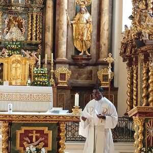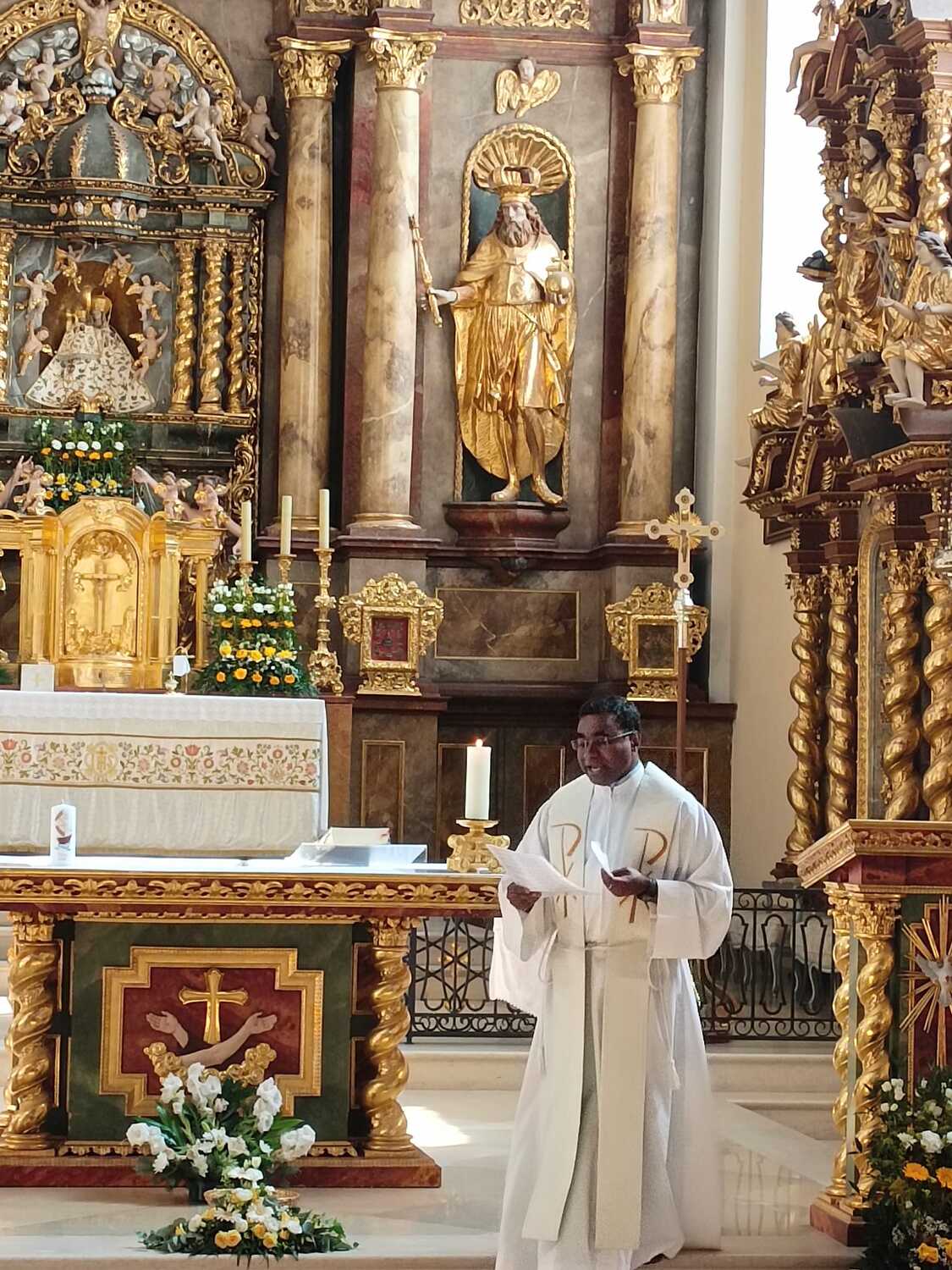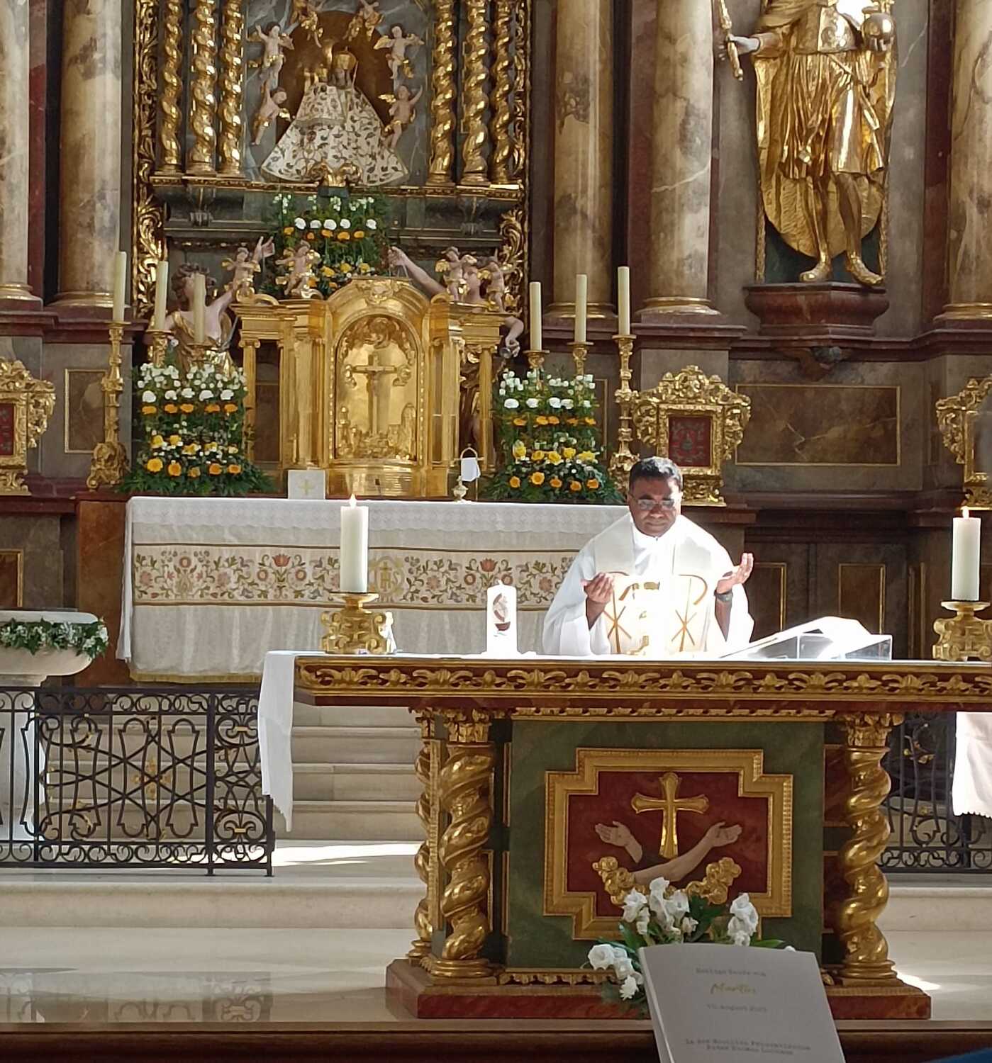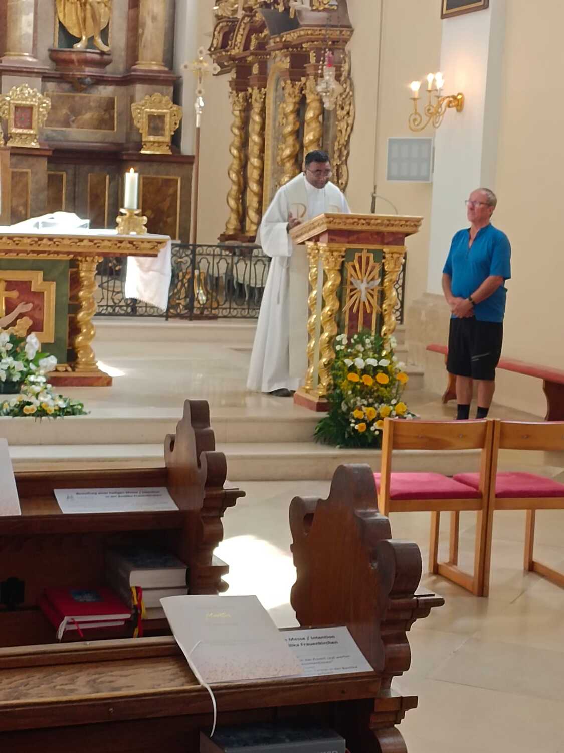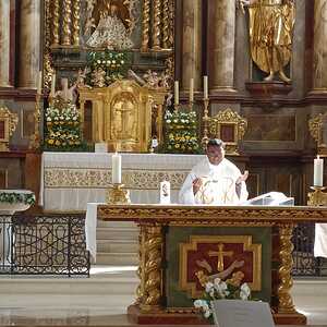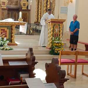Bereits um 10:00 wurde die Gruppe von P. Thomas Lackner herzlich vor der Basilika begrüßt. Anschließend wurde eine hl. Messe, gemeinsam mit einigen mit dem Auto angereisten Wiesern, gefeiert.