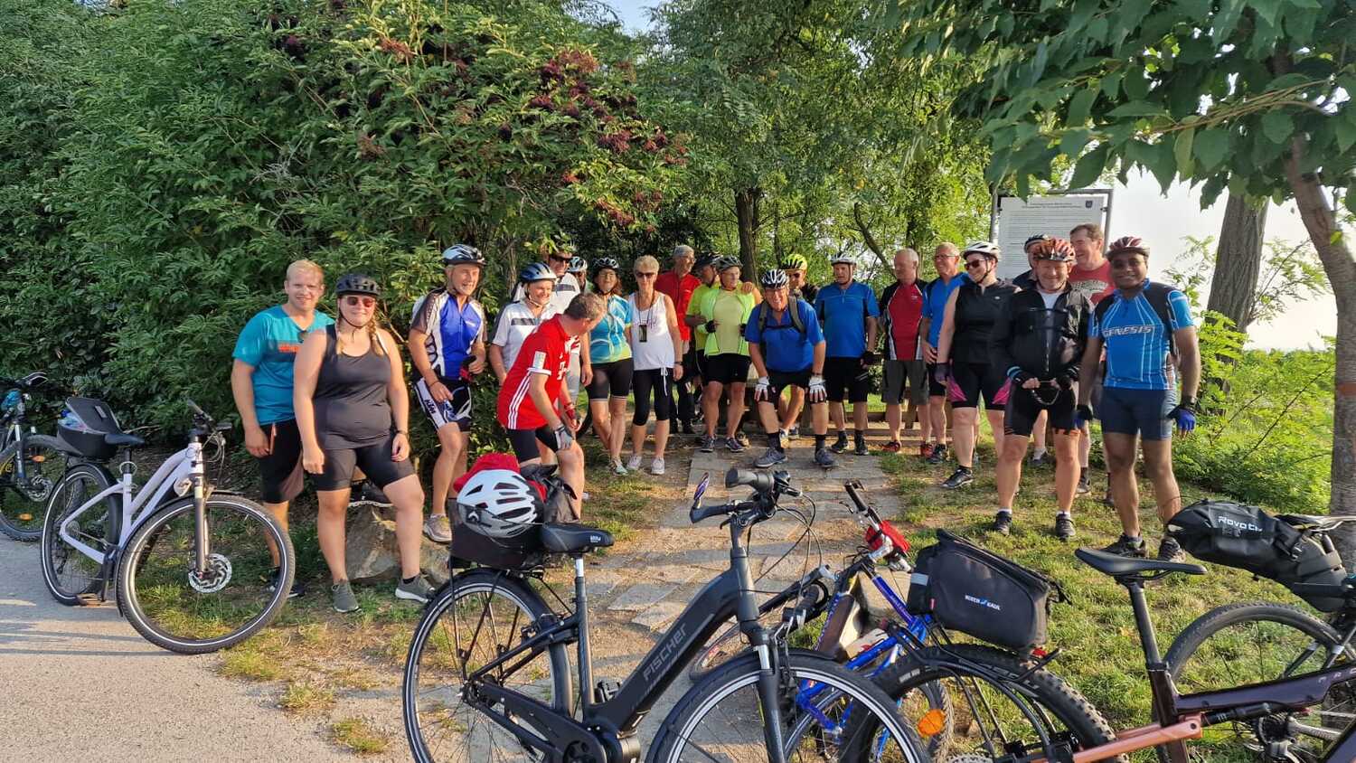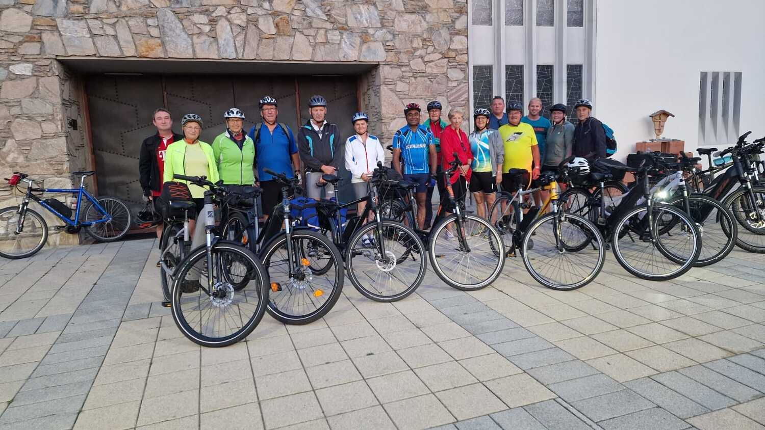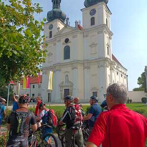 Gleich 26 Personen nahmen die Einladung der Pfarre zur ersten Radwallfahrt nach Frauenkirchen an. Nach einem Segensgebet um 05:30 vor der Pfarrkirche, starteten die Biker gemeinsam mit P. Jomon und Toni Widlhofer, die die Wallfahrt organisierten, Richtung Mörbisch.