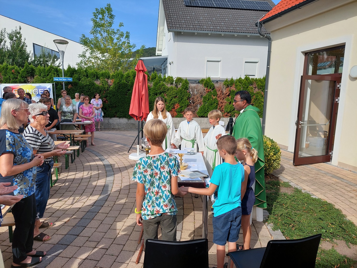 Das Pfarrfest wurde auch dieses Jahr wieder mit viel Engagement organisiert. Zusammen mit P. Jomon wurde ein Festgottesdienst gefeiert, welcher von der Gruppe Jubilate musikalisch gestaltet wurde. Danach folgte ein Frühshoppen mit dem Musikverein Wiesen. Bis in die späten Abendstunden konnten sich die Gäste bei Speis und Trank, am Nachmittag mit Live-Musik von Gipsy, gut unterhalten.