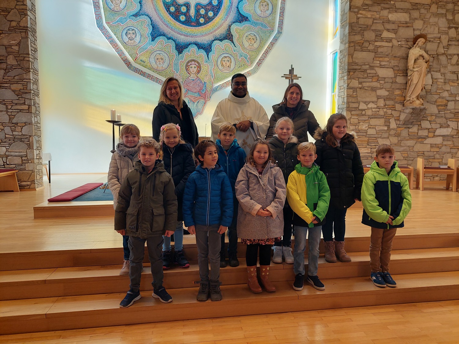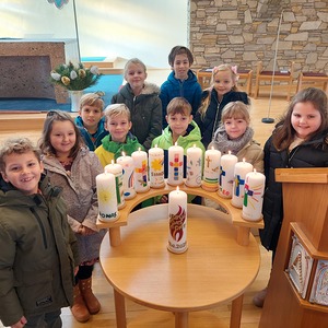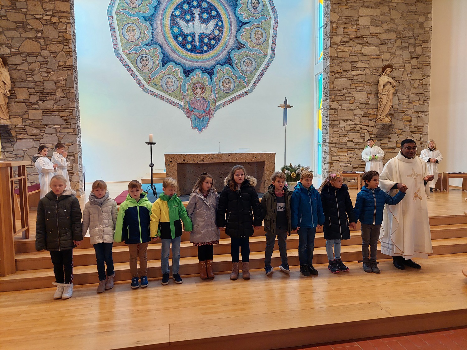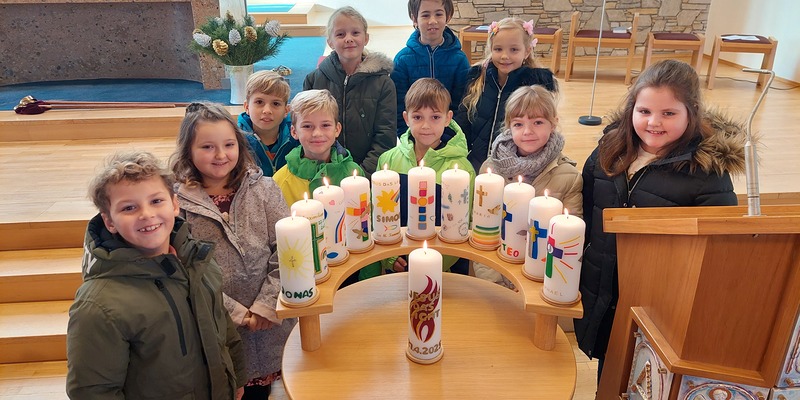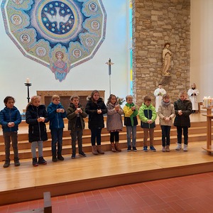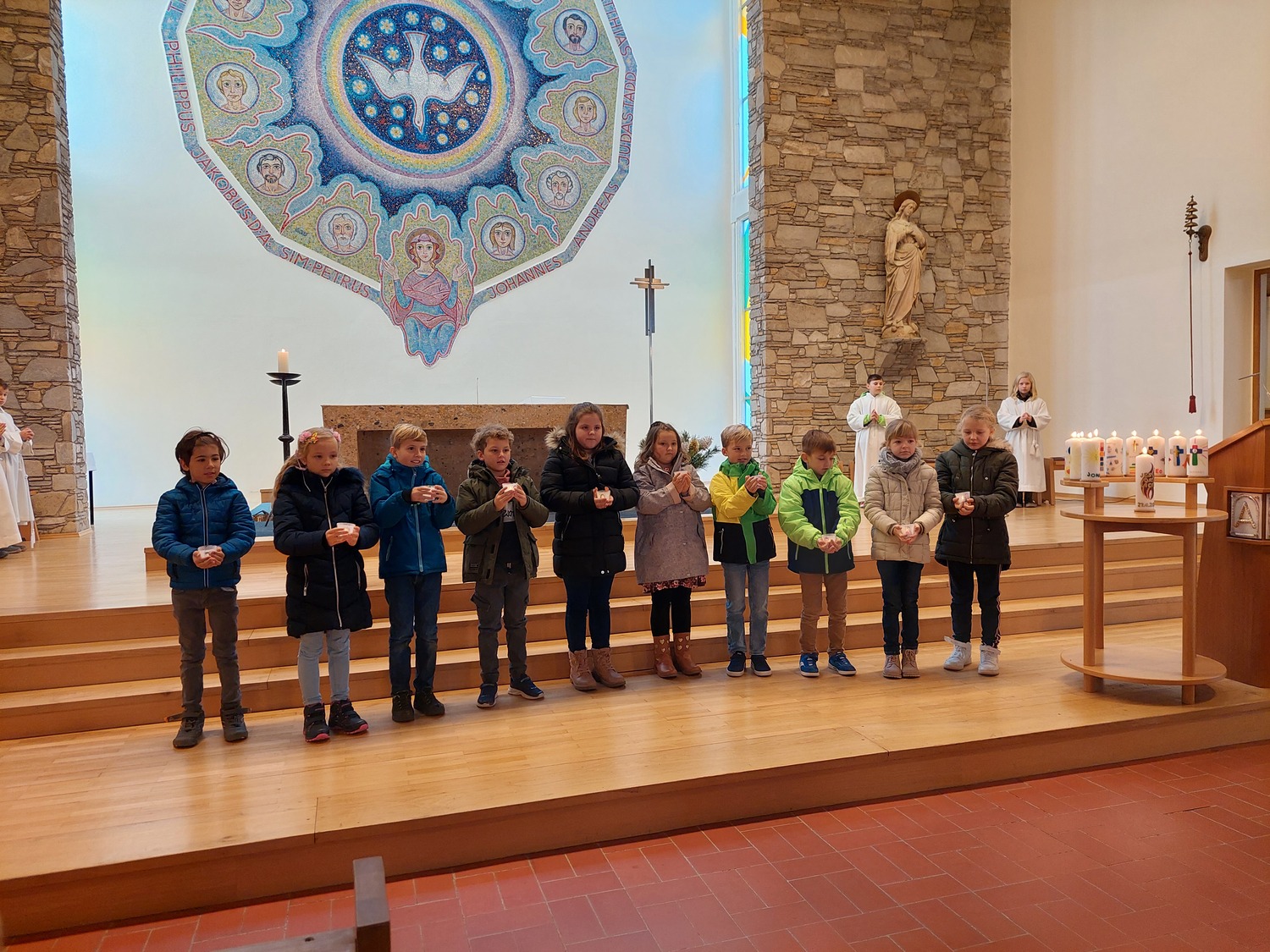 11 Erstkommunionkinder haben sich am Christkönigssonntag der Pfarrgemeinde vorgestellt. Unter dem Motto "Jesus das Licht" bereiten sie sich gemeinsam auf die Erstkommunion vor.