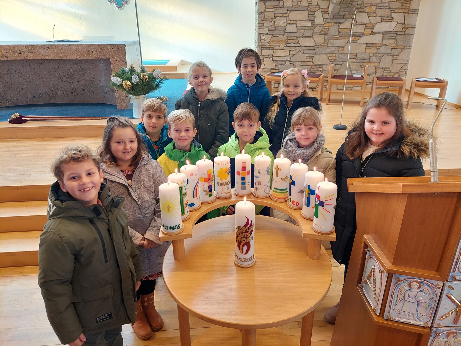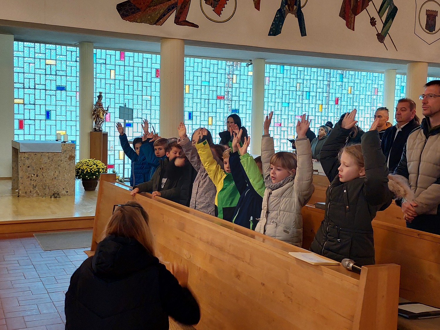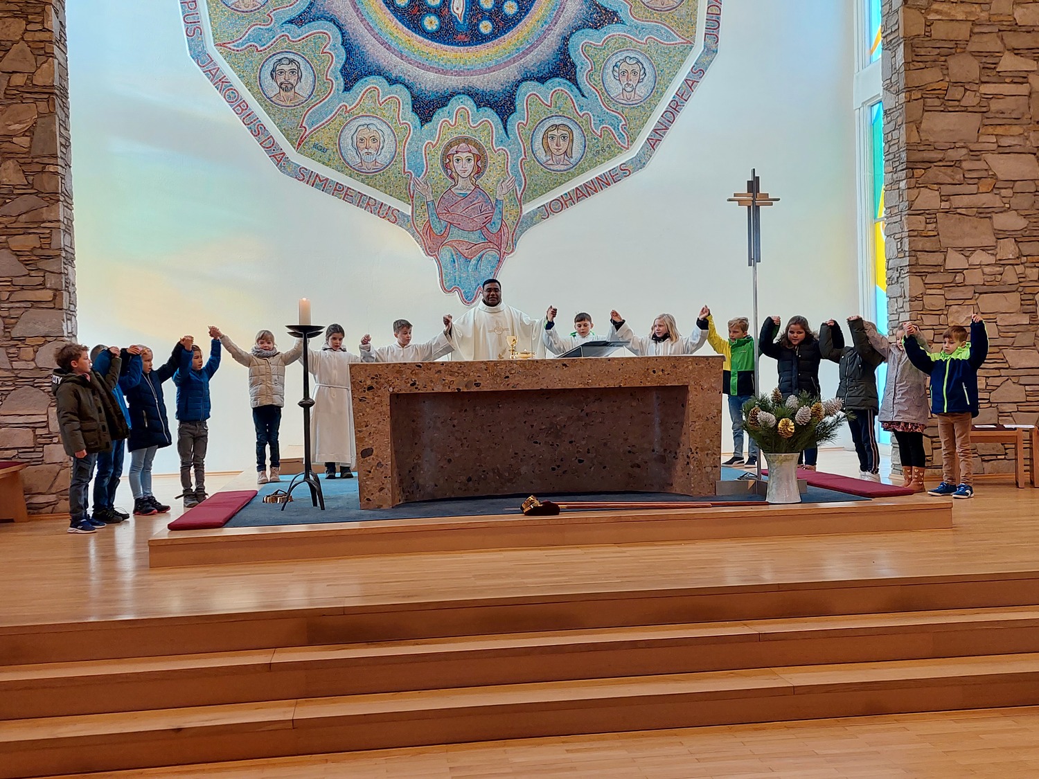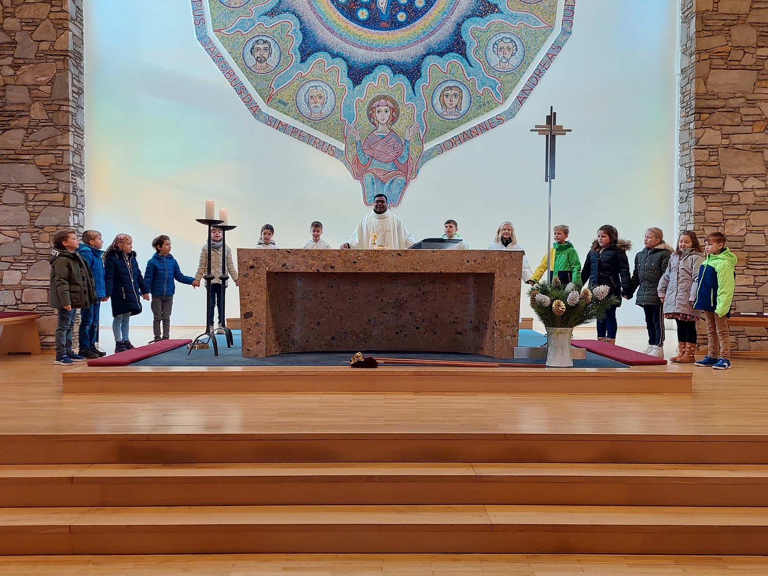 11 Erstkommunionkinder haben sich am Christkönigssonntag der Pfarrgemeinde vorgestellt. Unter dem Motto "Jesus das Licht" bereiten sie sich gemeinsam auf die Erstkommunion vor.