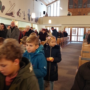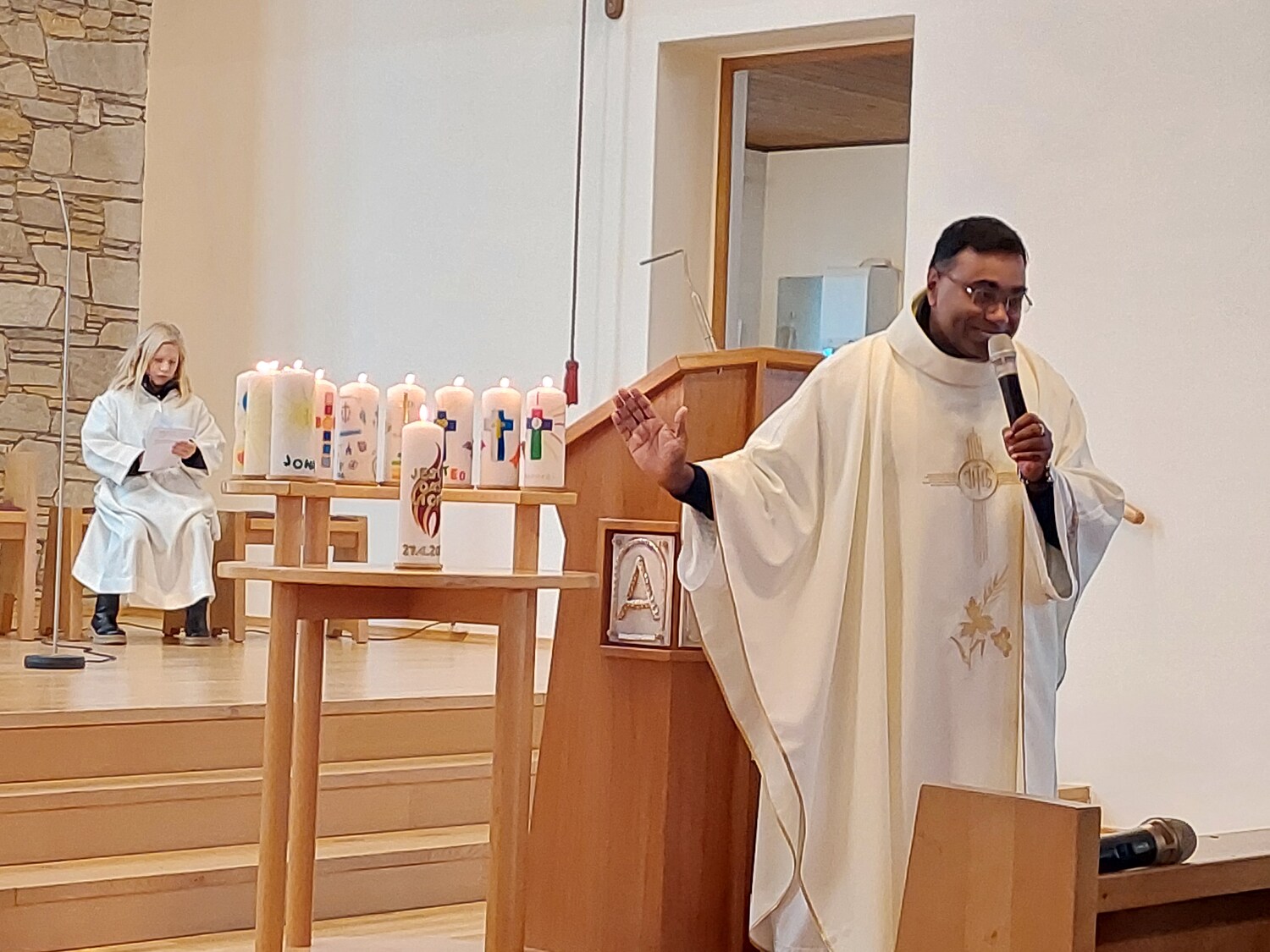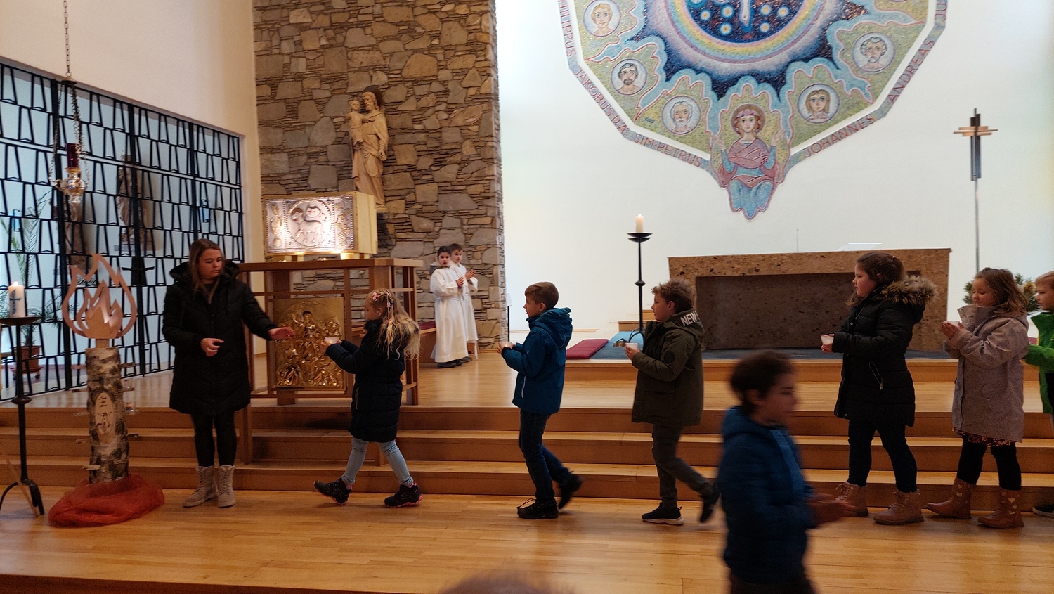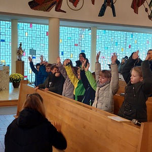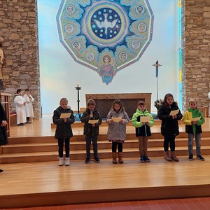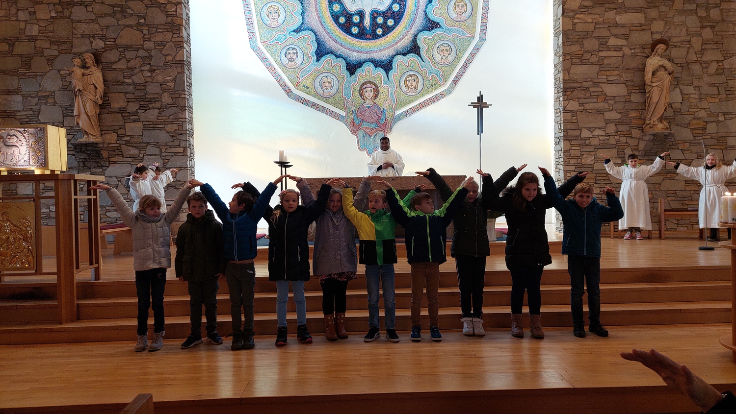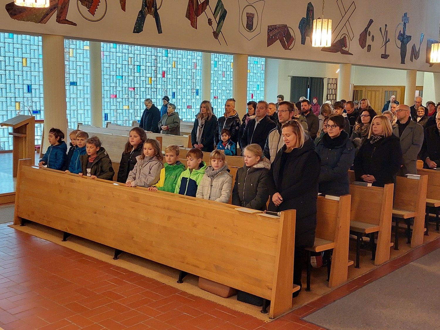 11 Erstkommunionkinder haben sich am Christkönigssonntag der Pfarrgemeinde vorgestellt. Unter dem Motto "Jesus das Licht" bereiten sie sich gemeinsam auf die Erstkommunion vor.