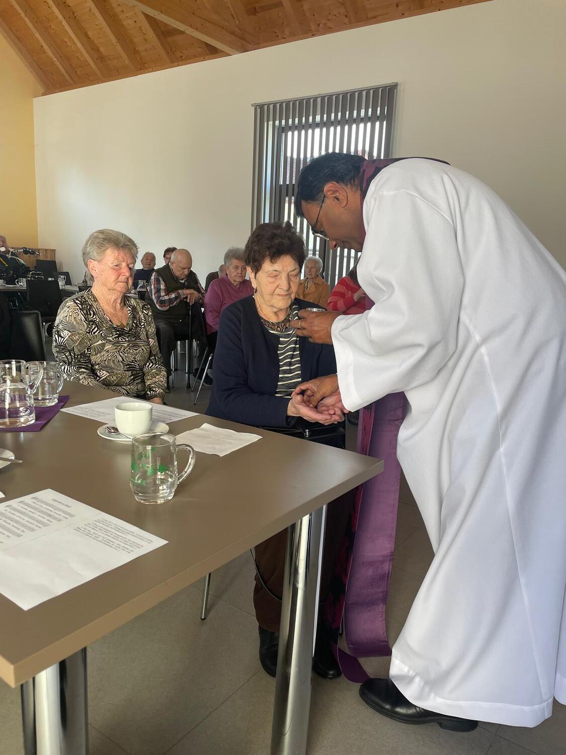Der Einladung zur Alten- und Krankenmesse, bei der Pfarrer Jomon auch die Krankensalbung spendete, sind viele Pfarrangehörige gefolgt. Im Anschluss blieb, bei Kaffee und Kuchen, noch Zeit für gesellige Gespräche.