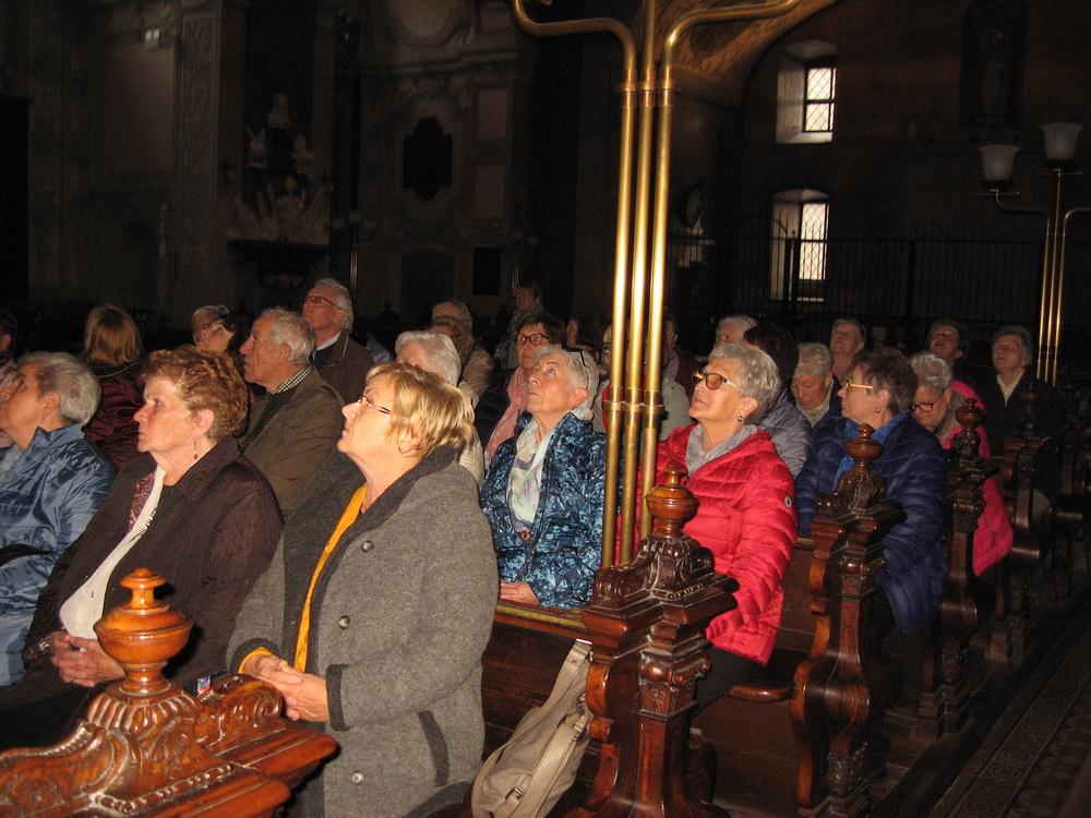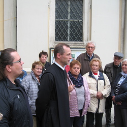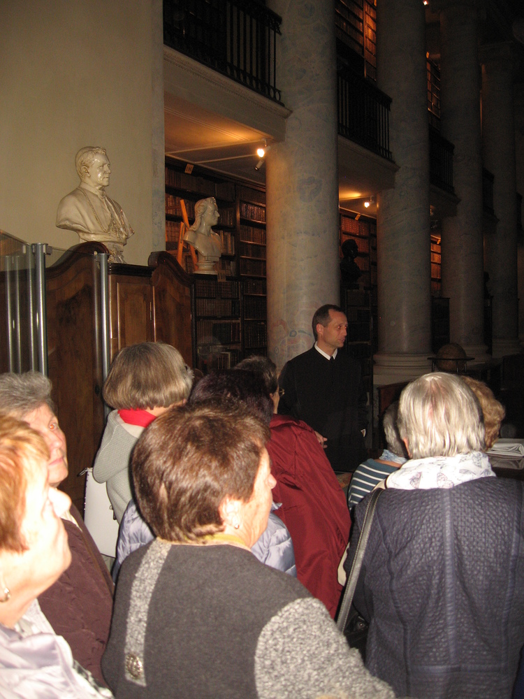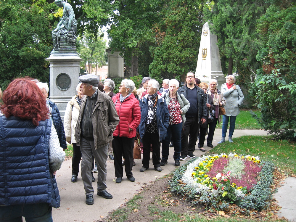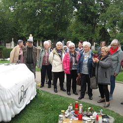 Zwei Reiseziele waren eingeplant: Wiener Zentralfriedhof und Schottenstift – für einen Großteil der 36 Reiseteilnehmer unbekannte Reiseziele. Umso erstaunlicher und informativer aber war alles, was gezeigt und gesehen wurde. Durch fachkundige Führung erhielten wir zunächst im Eingangsbereich des Zentralfriedhofes eine Menge Informationen über das weitläufige Friedhofsareal, u.a.: zweitgrößter Friedhof Europas – Eröffnungsjahr 1874 – Ruhestätte für 3 Millionen Verstorbene, darunter sehr viel „Prominenz“ - die Bestattungskultur – die Besucheranzahl (in Wien an 3. Stelle nach Stephansdom und Schönbrunn) – Besichtigung der barocken „Lueger-Kirche“ – die „Präsidentengruft“…. In bedächtiger Ruhe schritten wir durch die Grabreihen, und an vielen Grabmälern sahen wir im Geist so manche Persönlichkeit vor uns, die noch in bester Erinnerung geblieben ist. – In Erinnerung geblieben ist auch ein Ausspruch unserer „Führerin“: Für jeden Friedhofsbesucher ergibt sich auch eine Gelegenheit, mit dem Sterben-Müssen Frieden zu schließen und Sorge zu tragen, dass Menschen Ruhe und Geborgenheit im Leben finden, nicht erst im Tod. Beim Eingang in das Schottenstift auf der „Freyung“ empfing uns Benediktinerpater Sebastian (ein Freund unseres Herrn Pfarrers Thorsten Carich, der dort vier Jahre wirkte) und erklärte in sympathischer Art Wissenswertes über seine Wirkungsstätte, wonach wir dann bei einem Rundgang durch das Kloster etliche Einrichtungen besichtigen konnten u.a. die Bibliothek und die Krypta. Den Abschluss bildete eine kurze Andacht in der mächtigen Stiftskirche. Die aufschlussreiche Wienfahrt wurde nach der Rückkehr nach Wiesen mit einem kulinarischen Beisammensein beim „Bäck“ beendet.