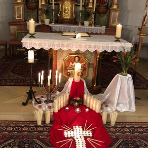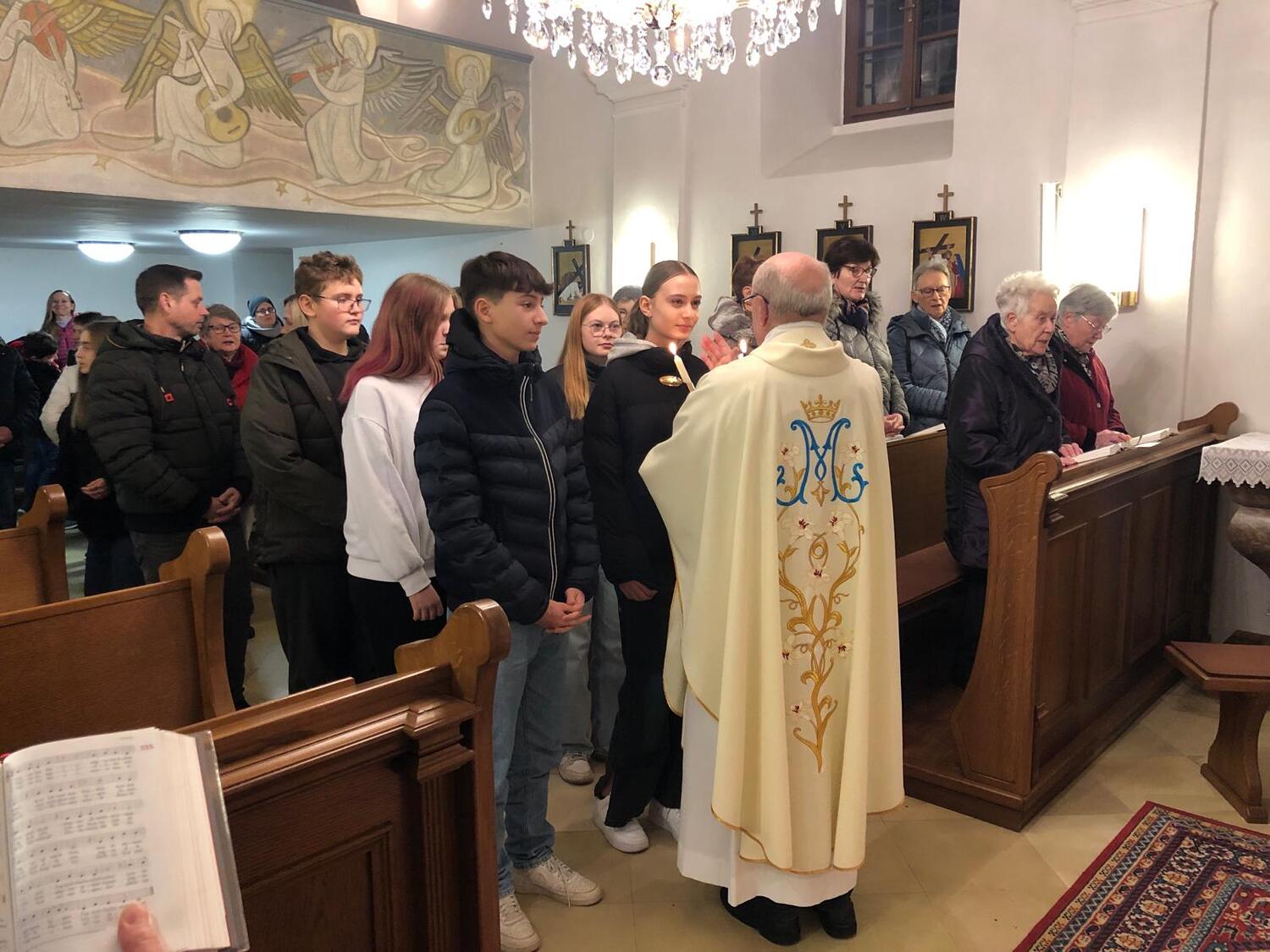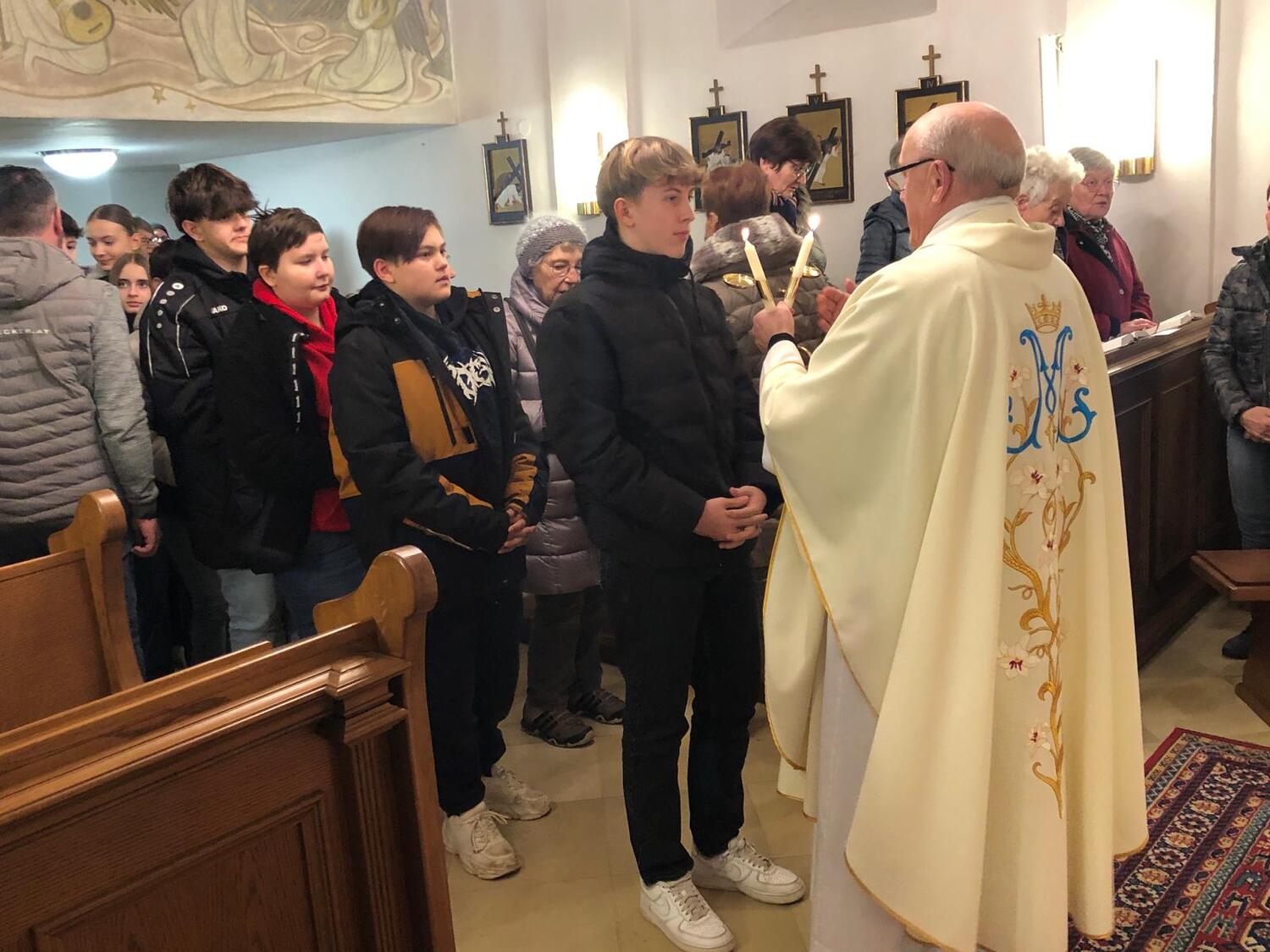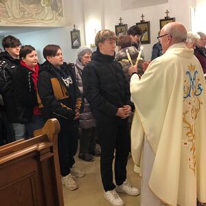 An diesem Abend wird auch mit zur Kreuzform gebundenen Kerzen der "Blasiussegen" erteilt. Der Heilige, dessen Namenstag am 3. Februar gefeiert wird, war ein fürhchristlicher Märtyrer und wird als Schutzpatron bei Halskrankheiten verehrt.