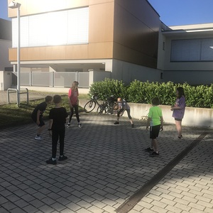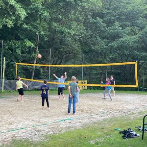 Nach einem ausgiebigen Abendessen starteten wir um ca. 20 Uhr mit einer Radtour. Unser Ziel war der Badesee Kobersdorf. Auf dem höchsten Punkt des Kirafelds wurde unsere Tour von „Klimasitzern“ gestoppt. Am Badesee angekommen, fand am Beachvolleyball ein Match Burschen gegen Mädchen statt. Unser Herr Pfarrer Shinto unterstützte die Burschen tatkräftig.